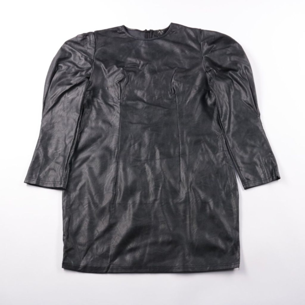 Повседневное платье AX из экокожи в чёрном цвете с длинным рукавом и аккуратной посадкой по фигуре. Подойдёт для вечерних выходов и на каждый день с ботильонами или кедами. Практичный материал легко протирать, не требует сложного ухода.