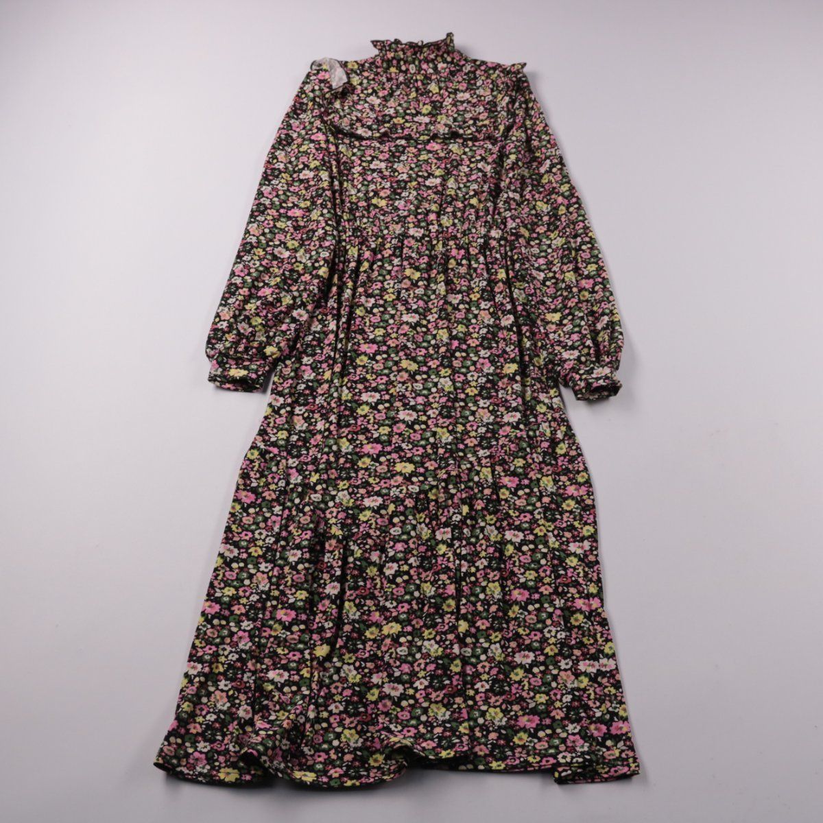 Повседневное платье Blue Vanilla в чёрном цвете с мелким цветочным принтом и длинными рукавами на манжетах. Подойдёт на каждый день и для прогулок, хорошо смотрится с ботинками или кедами. Ткань с эластаном чуть тянется и комфортно садится по фигуре.