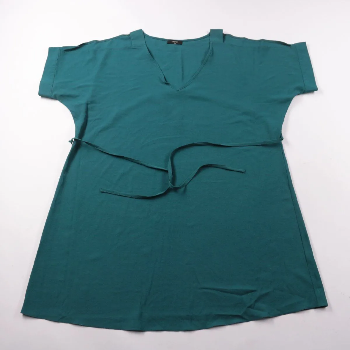 Повседневное платье Papaya бирюзового оттенка с V-образным вырезом и короткими рукавами. Модель прямого силуэта с поясом, подойдёт для прогулок и офиса в тёплую погоду. Ткань со стрейчем комфортно садится по фигуре и проста в уходе.
