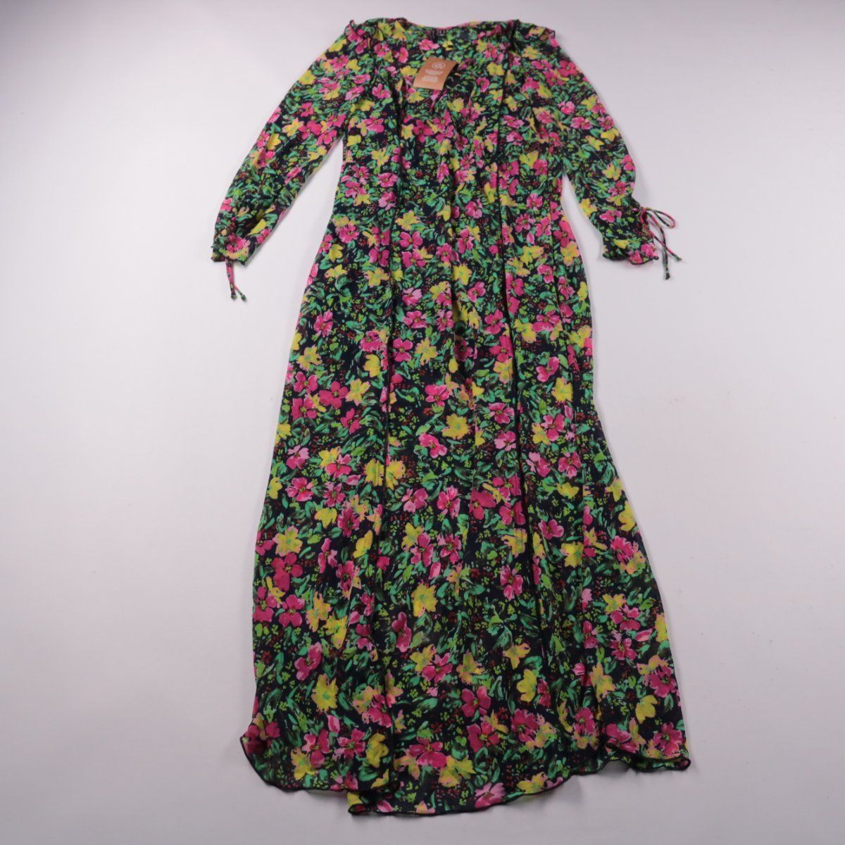 Длинное повседневное платье Vero Moda длины до щиколотки с ярким цветочным принтом на тёмном фоне и длинными рукавами на завязках. Подойдёт для летних прогулок и отдыха, хорошо смотрится с сандалиями или кедами. Лёгкий полиэстер практичен в уходе и быстро сохнет.