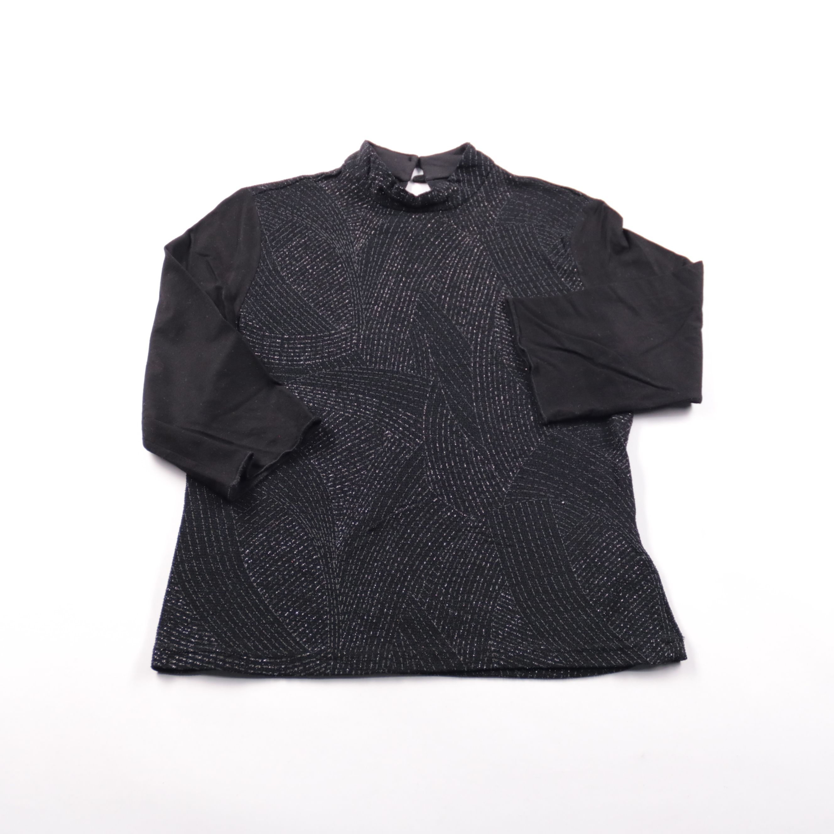 Женская блузка Canda в чёрном цвете с фактурным узором на передней части и однотонными рукавами. Подойдёт для офиса и повседневных образов, хорошо смотрится под жакетом или кардиганом. Материал мягкий и комфортный, не требует сложного ухода.
