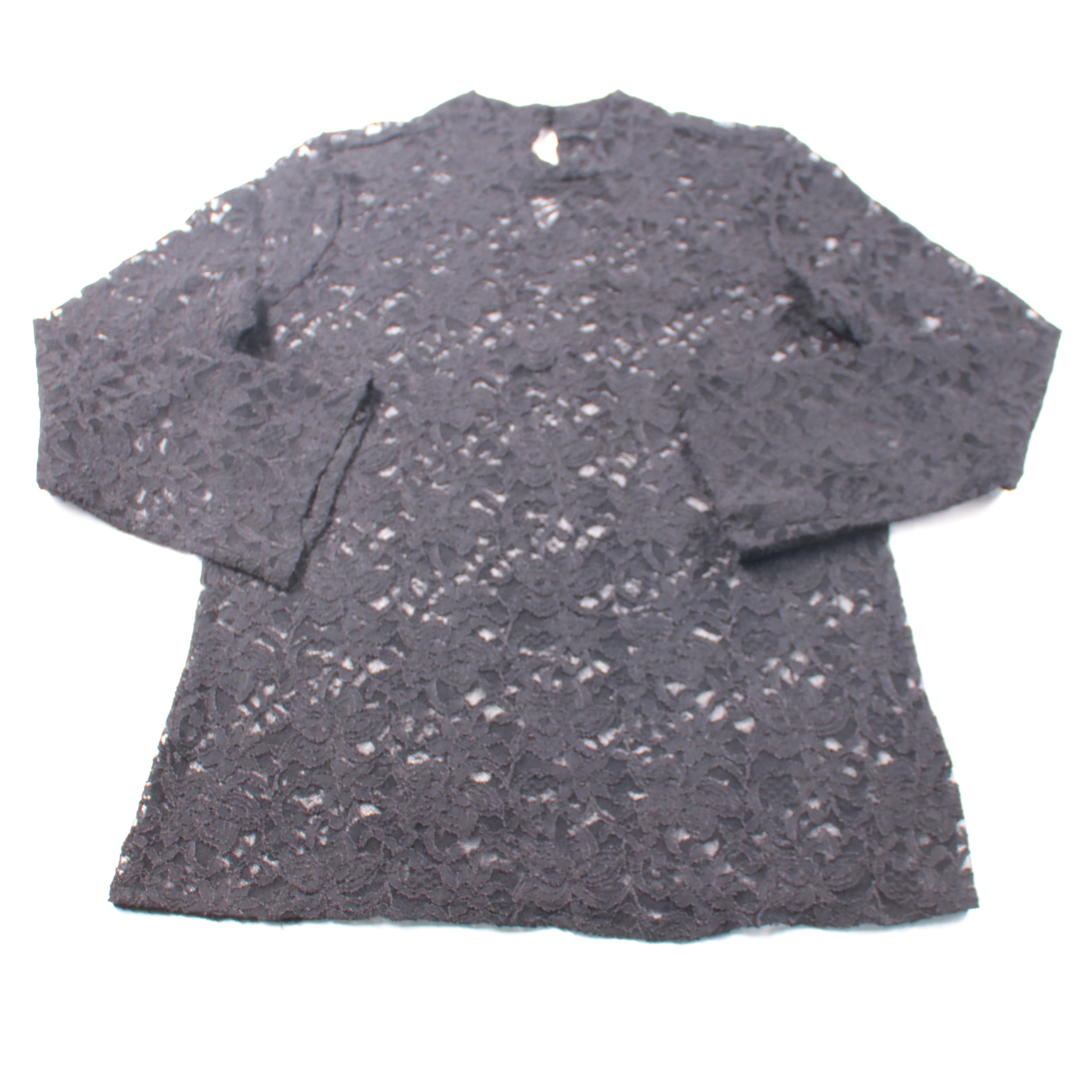 Женская кружевная блузка в чёрном цвете с длинным рукавом и полупрозрачной фактурой. Подойдёт для вечерних выходов и аккуратных повседневных образов с топом или майкой под низ. Лёгкое кружево хорошо смотрится в многослойных сочетаниях и занимает миниму...