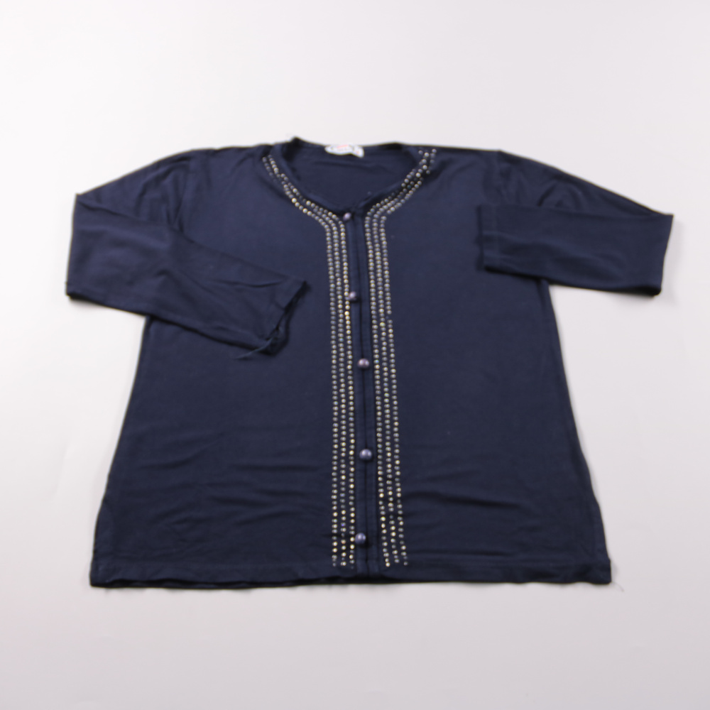 Женская блузка Cihan тёмно-синего цвета с декоративной отделкой по планке и горловине и застёжкой на пуговицы. Подойдёт для офиса и повседневных образов с брюками или юбкой. Длинный рукав делает её удобной для прохладной погоды и кондиционируемых помещ...