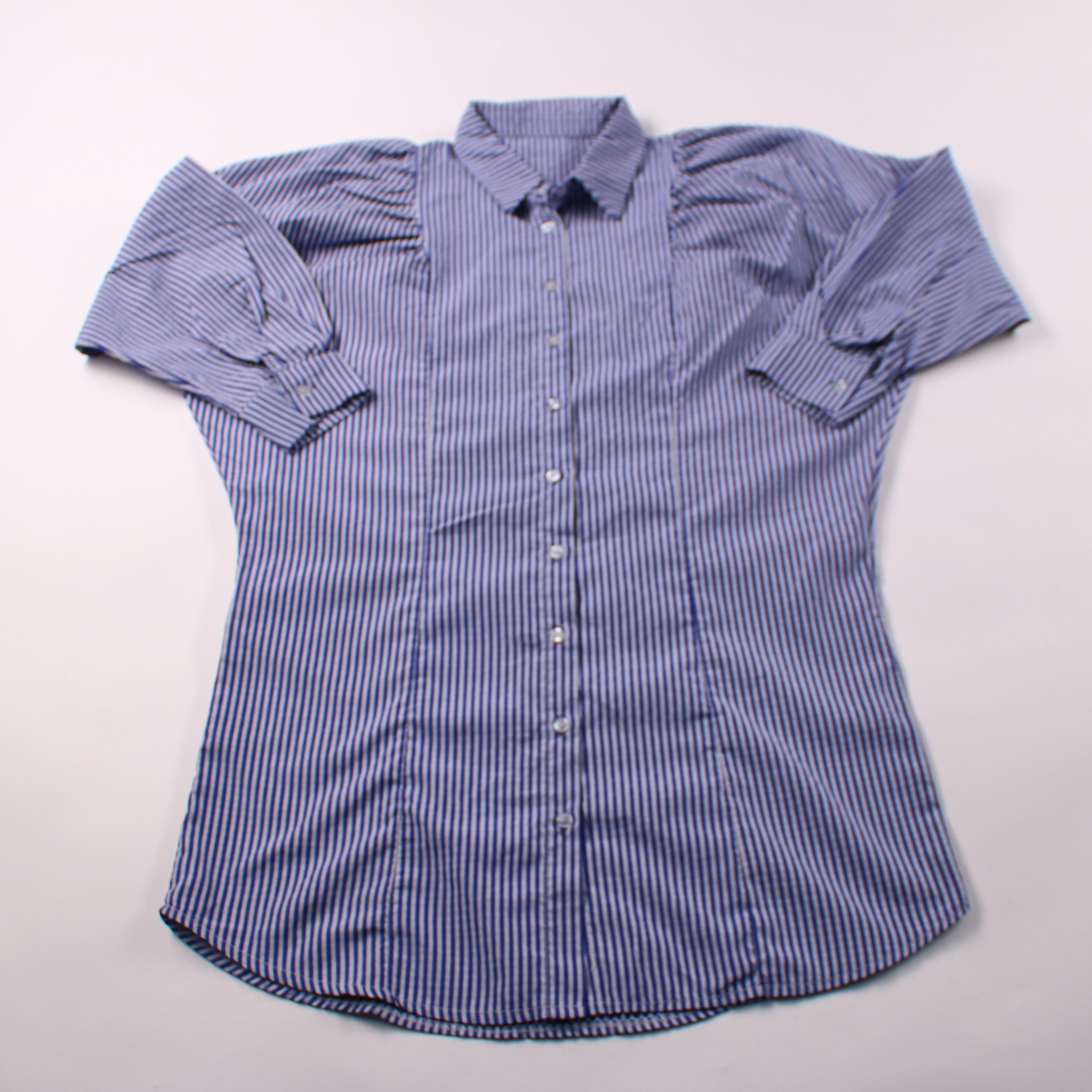 Женская рубашка в синюю полоску с длинным рукавом и классическим воротником, застёгивается на пуговицы. Подойдёт для офиса и на каждый день, легко сочетается с джинсами или брюками. Практичная ткань и базовый принт делают её удобной вещью для многослой...
