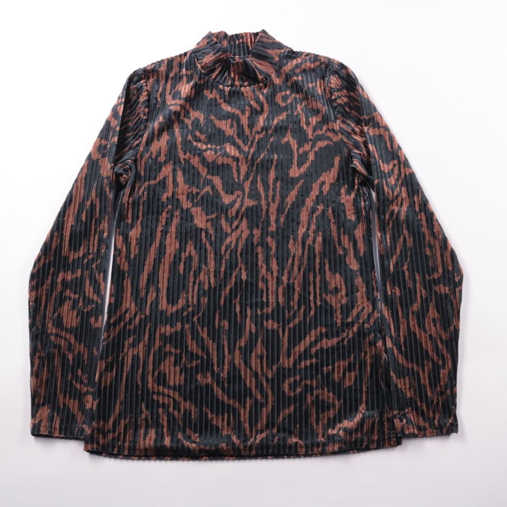 Женская блузка Casual Ladies из плиссированной ткани с анималистичным принтом в черно-коричневых тонах и длинным рукавом. Подойдёт для офиса и повседневных образов с брюками или юбкой за счёт аккуратного воротника-стойки. Практичное преимущество — мате...