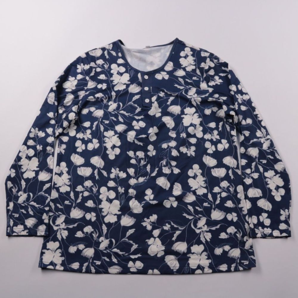 Женская блузка с цветочным принтом и планкой на пуговицах, мягкая и приятная к телу. Подойдёт для повседневных образов и офиса в сочетании с джинсами или брюками. Практична в уходе: машинная стирка при 40°C.