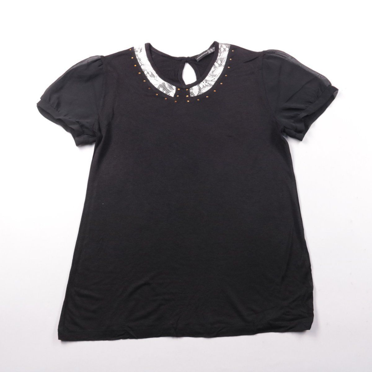 Женская блузка Atmosphere чёрного цвета с коротким рукавом и декоративным воротником. Подойдёт для офиса и повседневных образов, аккуратно смотрится под жакетом или кардиганом. Вискоза приятна к телу и хорошо драпируется.