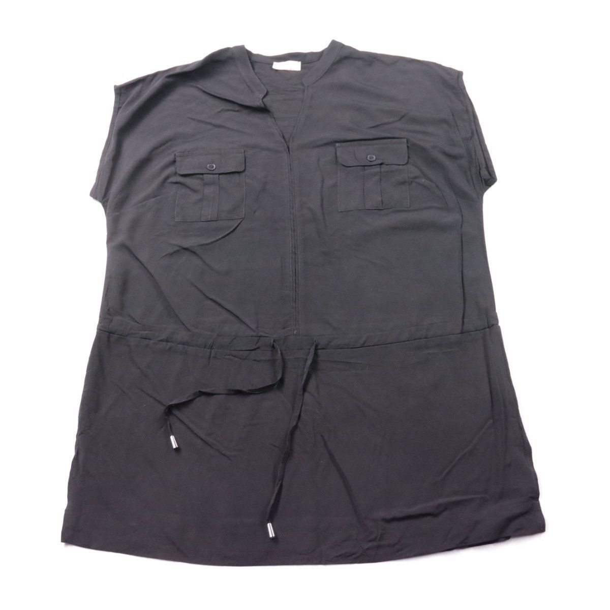 Женская блузка Mona чёрного цвета, без рукавов, с нагрудными карманами и поясом-кулиской на талии. Подойдёт для офиса и повседневных образов в тёплую погоду или как слой под жакет в межсезонье. Пояс помогает регулировать посадку и подчёркивать силуэт.