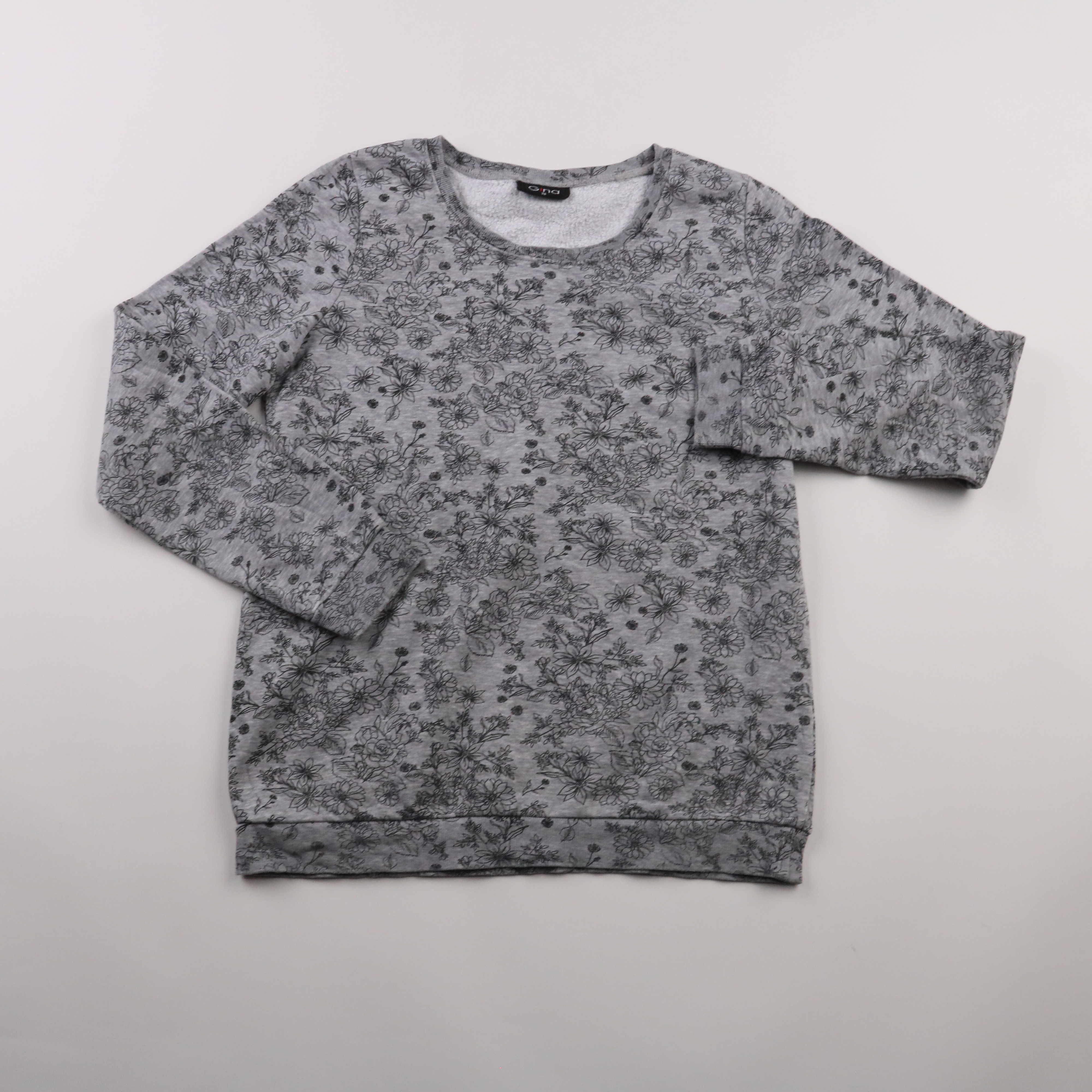 Свитшот Gina серого цвета с цветочным принтом и круглым вырезом. Подойдёт для повседневных образов и прогулок в прохладную погоду. Мягкая изнанка делает его комфортным и тёплым в носке.