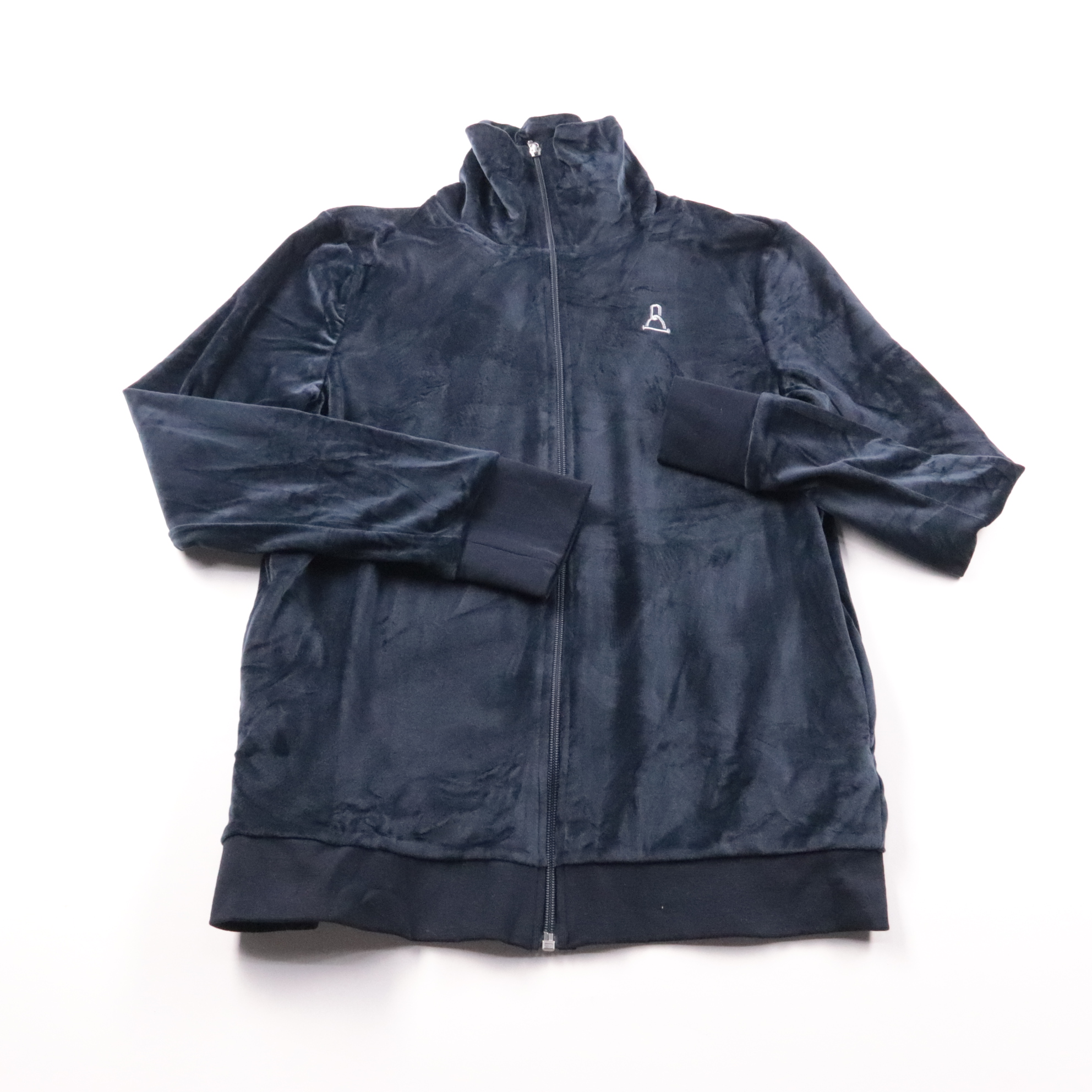Толстовка Esmara на молнии из мягкого велюра, тёмно-синего цвета, с высоким воротником-стойкой. Подойдёт для повседневной носки и прогулок в прохладную погоду. Практичный плюс — удобная застёжка на всю длину, можно быстро надеть и снять.