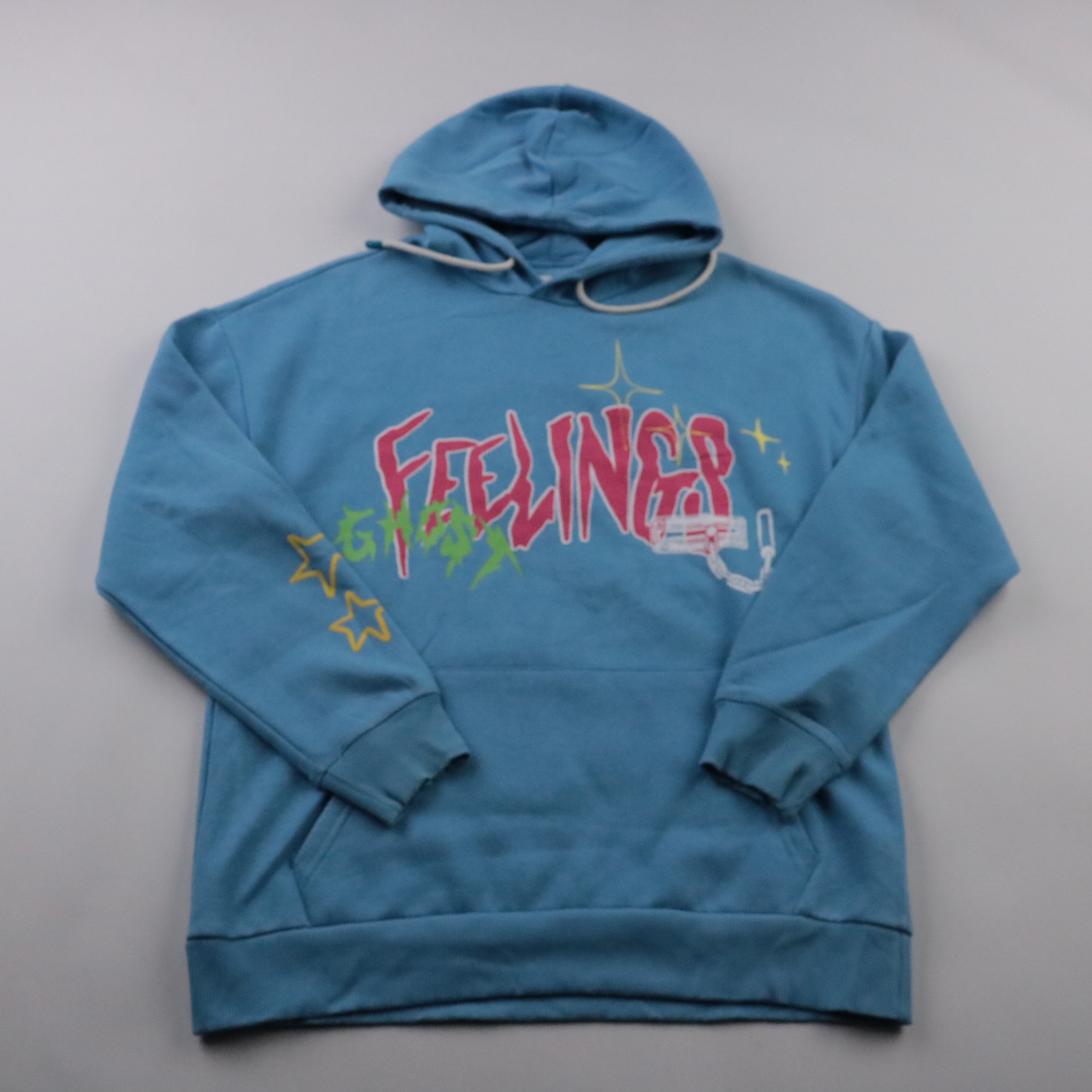 Толстовка Bershka голубого цвета с капюшоном и ярким принтом спереди. Подойдёт для повседневных образов и прогулок в прохладную погоду. Мягкая хлопковая ткань и карман-кенгуру делают её удобной для носки каждый день.