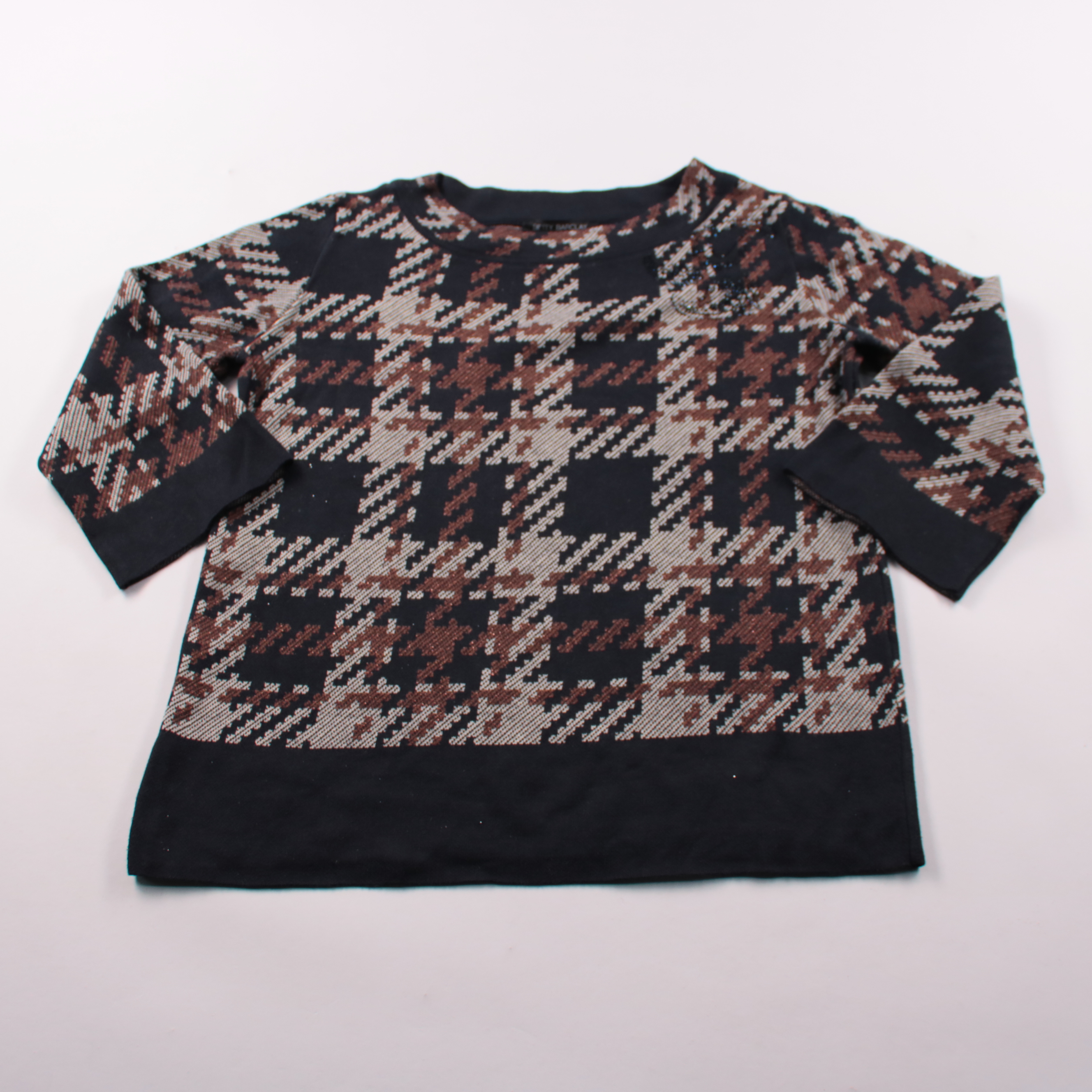 Свитшот Betty Barclay с геометрическим узором в коричнево-бежево-чёрной гамме и укороченными рукавами. Подойдёт для повседневных образов с джинсами или однотонными брюками в прохладные дни. Плотный материал держит форму и хорошо смотрится без сложного ...