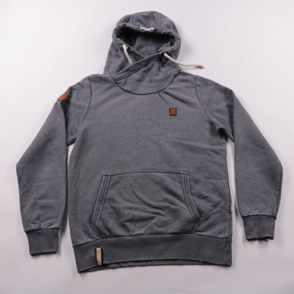Худи Naketano серого цвета с высоким воротником и капюшоном на шнурке, спереди есть карман-кенгуру и фирменные нашивки. Подойдёт для повседневной носки и прогулок в прохладную погоду. Плотный трикотаж хорошо держит форму и комфортно носится поверх футб...