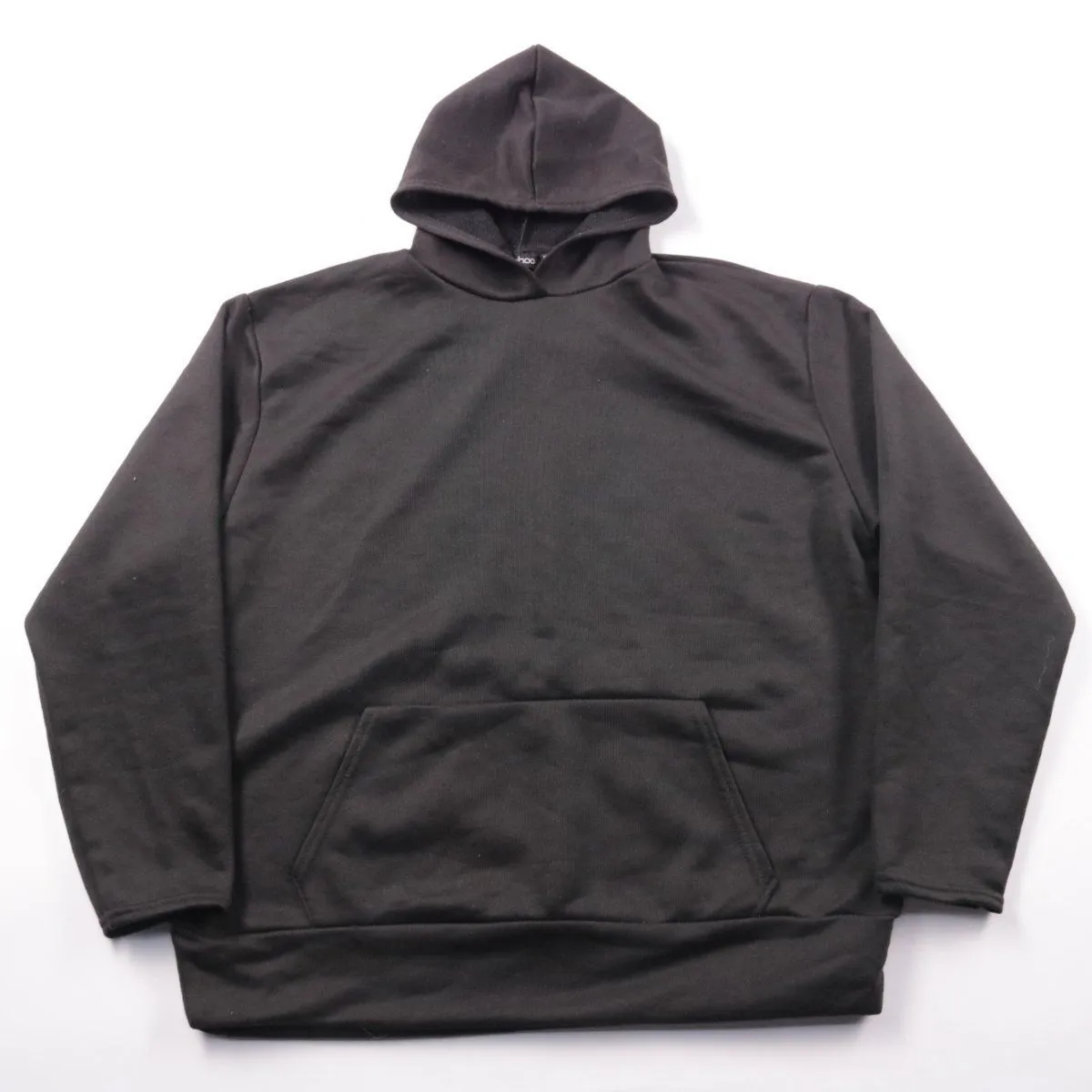Чёрное худи Boohoo с капюшоном и карманом-кенгуру, без принтов. Подойдёт для повседневных образов, прогулок и дороги, хорошо сочетается с джинсами и спортбрюками. Ткань мягкая и слегка тянется, легко стирается и быстро сохнет.