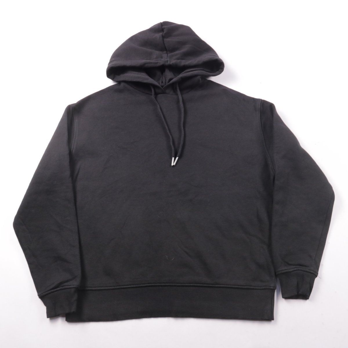 Женская чёрная толстовка с капюшоном F&F без принта, с манжетами и поясом на резинке. Подойдёт для повседневной носки и прогулок в прохладную погоду. Практичный тёмный цвет легко сочетать с джинсами и спортивными брюками.
