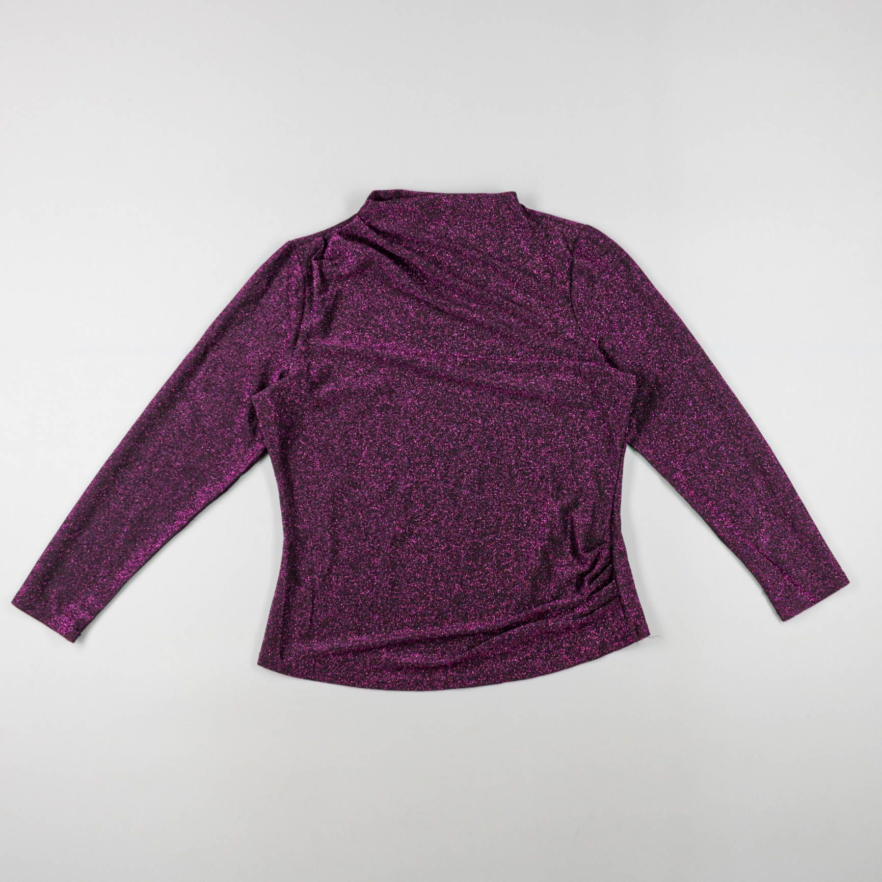 Женский лонгслив с длинным рукавом и высоким воротником-стойкой, выполнен из ткани с блестящей люрексовой нитью. Подойдёт для вечерних выходов и праздничных образов, хорошо сочетается с однотонным низом. Материал тянется и комфортно садится по фигуре, ...