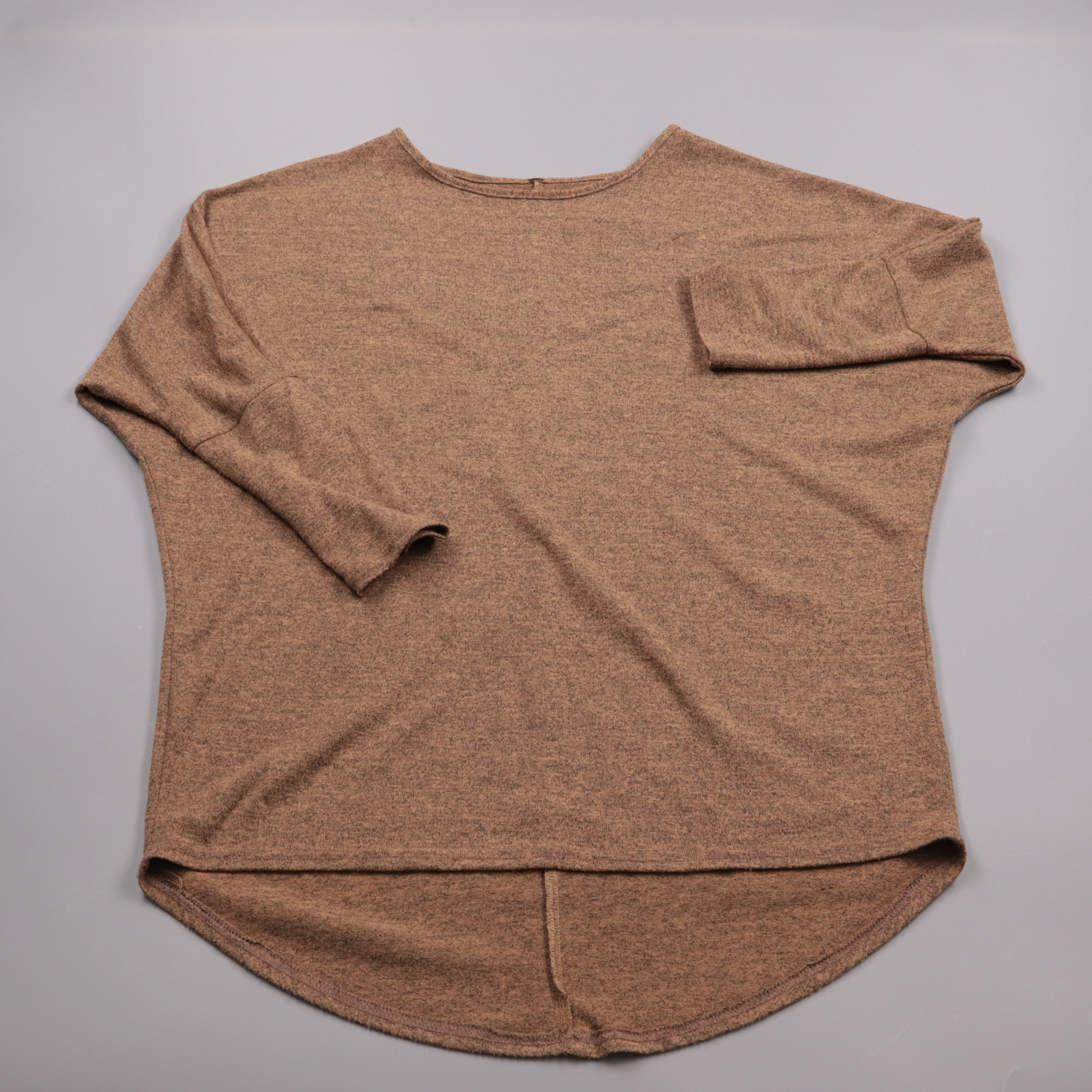 Женский лонгслив из мягкого трикотажа меланжевого бежево-коричневого оттенка, свободного кроя с укороченными рукавами. Подойдёт для повседневных образов и в качестве базового слоя в прохладную погоду. Неприхотлив в уходе и хорошо сочетается с джинсами ...