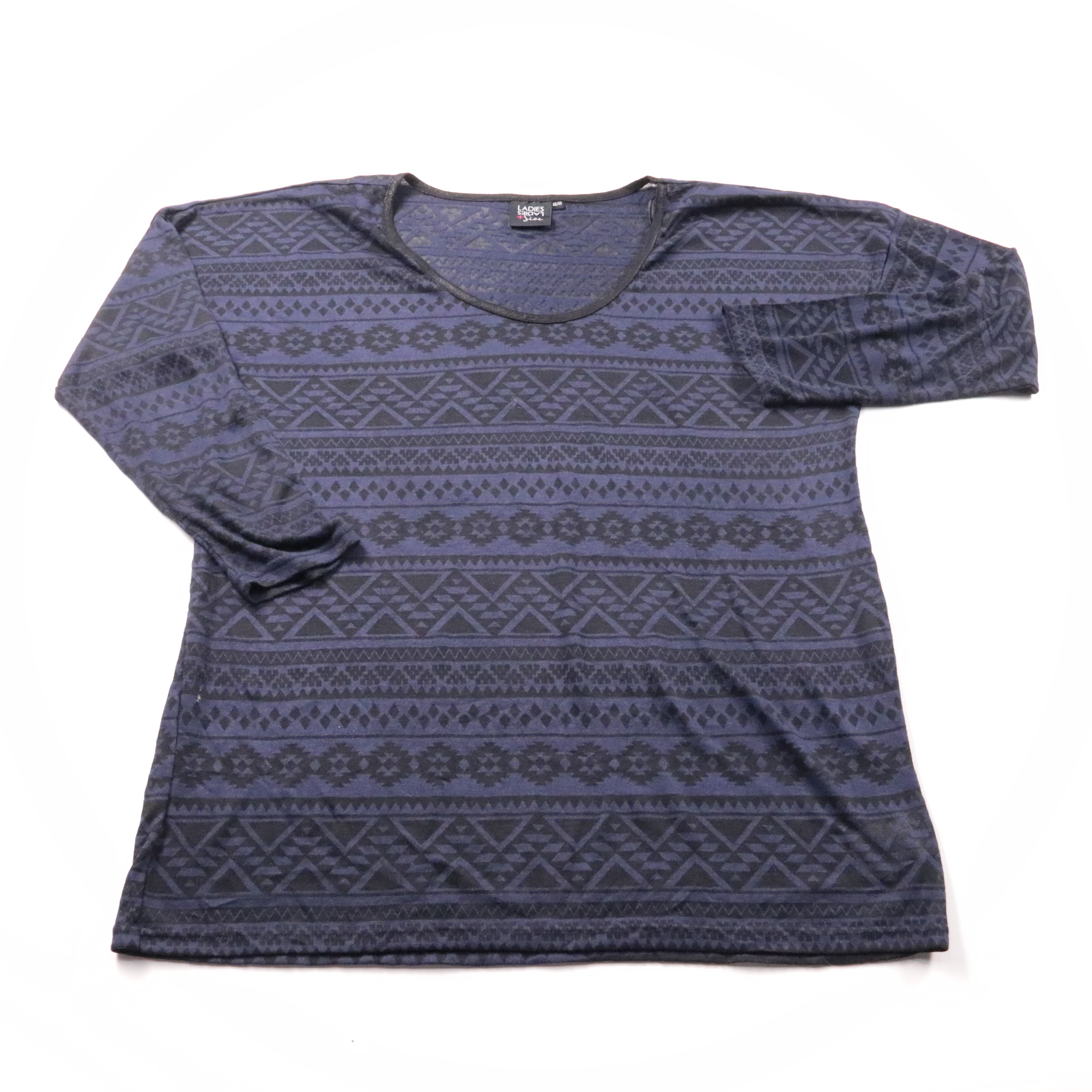 Женский лонгслив Ladies в синем цвете с геометрическим орнаментом и округлым вырезом. Подойдёт для повседневных образов и офиса в стиле casual, хорошо сочетается с джинсами и однотонными брюками. Трикотаж мягкий и тянется, поэтому в нём комфортно весь ...