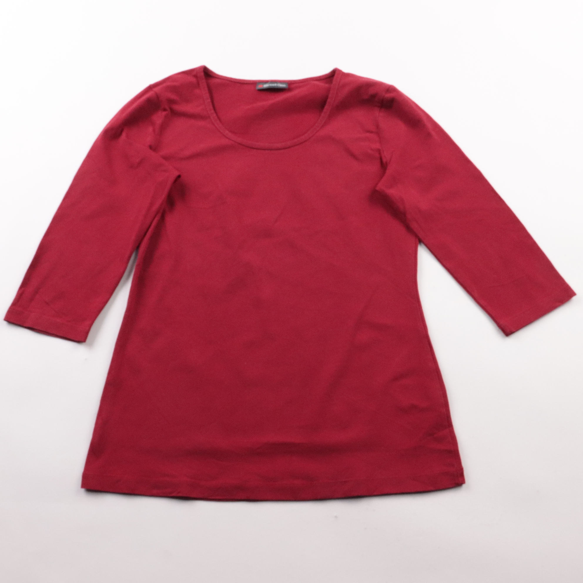 Женский лонгслив Street One бордового цвета с круглым вырезом и рукавом 3/4. Подойдёт для повседневных образов и офиса в сочетании с джинсами или юбкой. Хлопковая ткань с эластаном хорошо тянется и комфортно сидит.