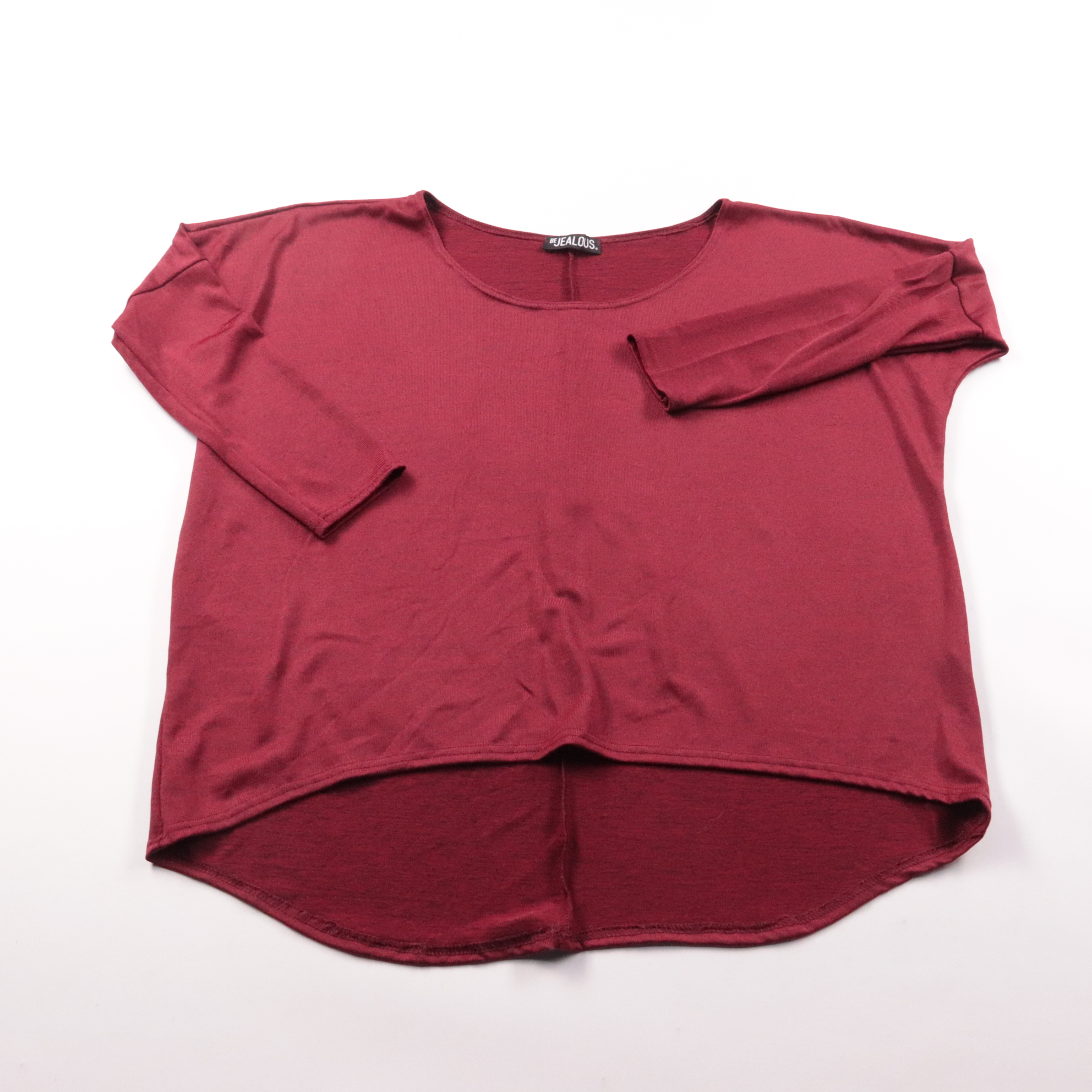 Лонгслив Be Jealous бордового цвета с свободным кроем и округлым вырезом. Подойдёт для повседневных образов с джинсами или леггинсами в прохладную погоду. Ткань с эластаном хорошо тянется и комфортно садится по фигуре.
