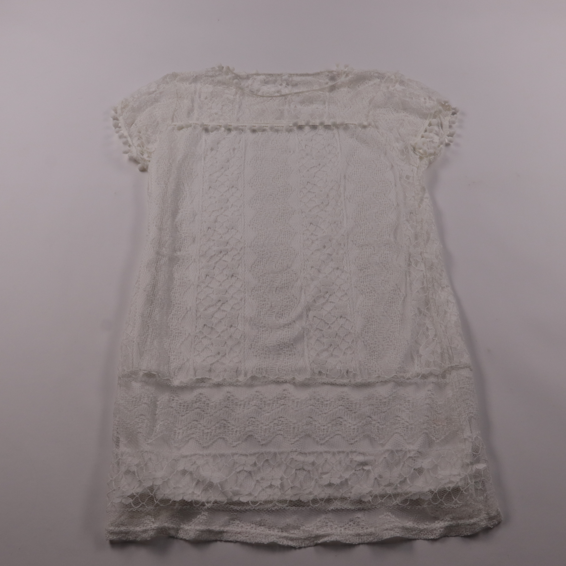 Женская белая кружевная футболка с декоративной отделкой по краям и ажурными вставками. Подойдёт для лета и тёплых дней, хорошо смотрится с джинсами, юбкой или шортами. Лёгкий материал и свободный крой делают её удобной для повседневной носки.