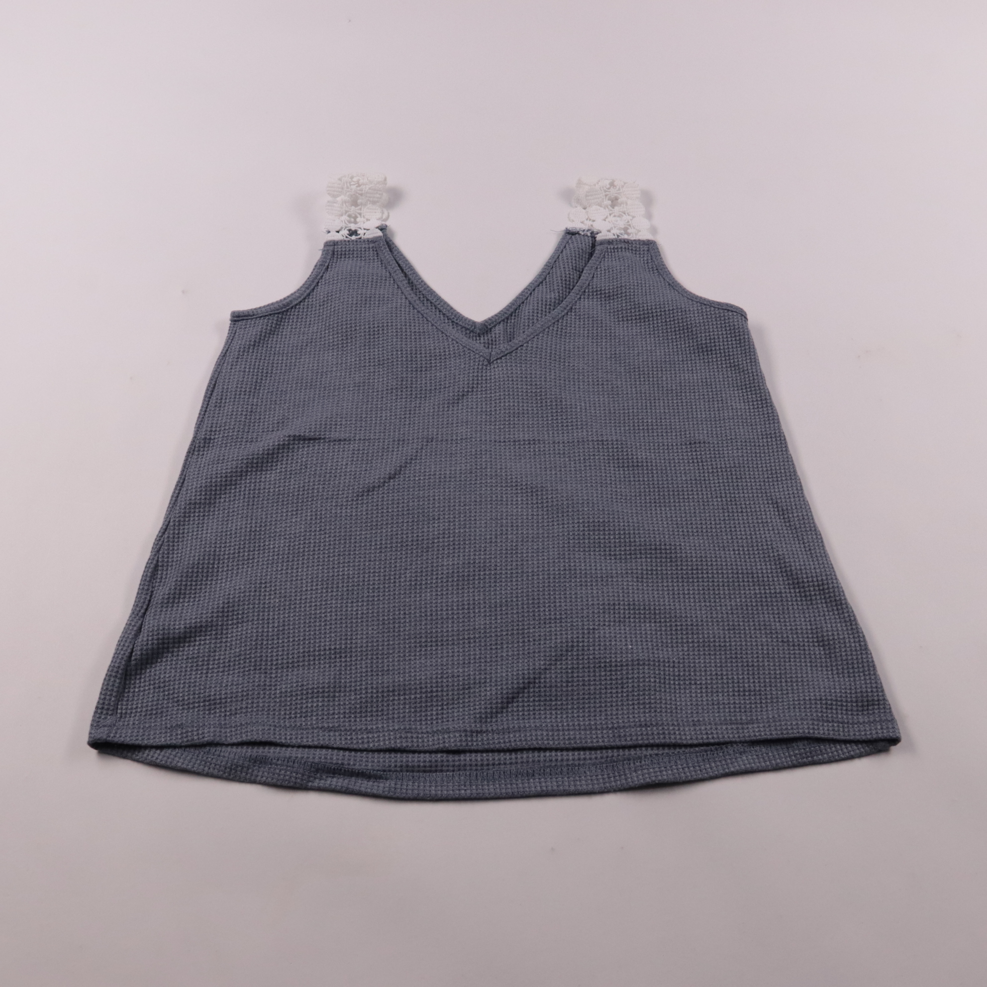 Женский топ Shein серого цвета из фактурного вафельного трикотажа, с V-образным вырезом и кружевными бретелями. Подойдёт для лета и тёплой погоды, хорошо смотрится с джинсами или шортами в повседневных образах. Материал эластичный, поэтому топ комфортн...