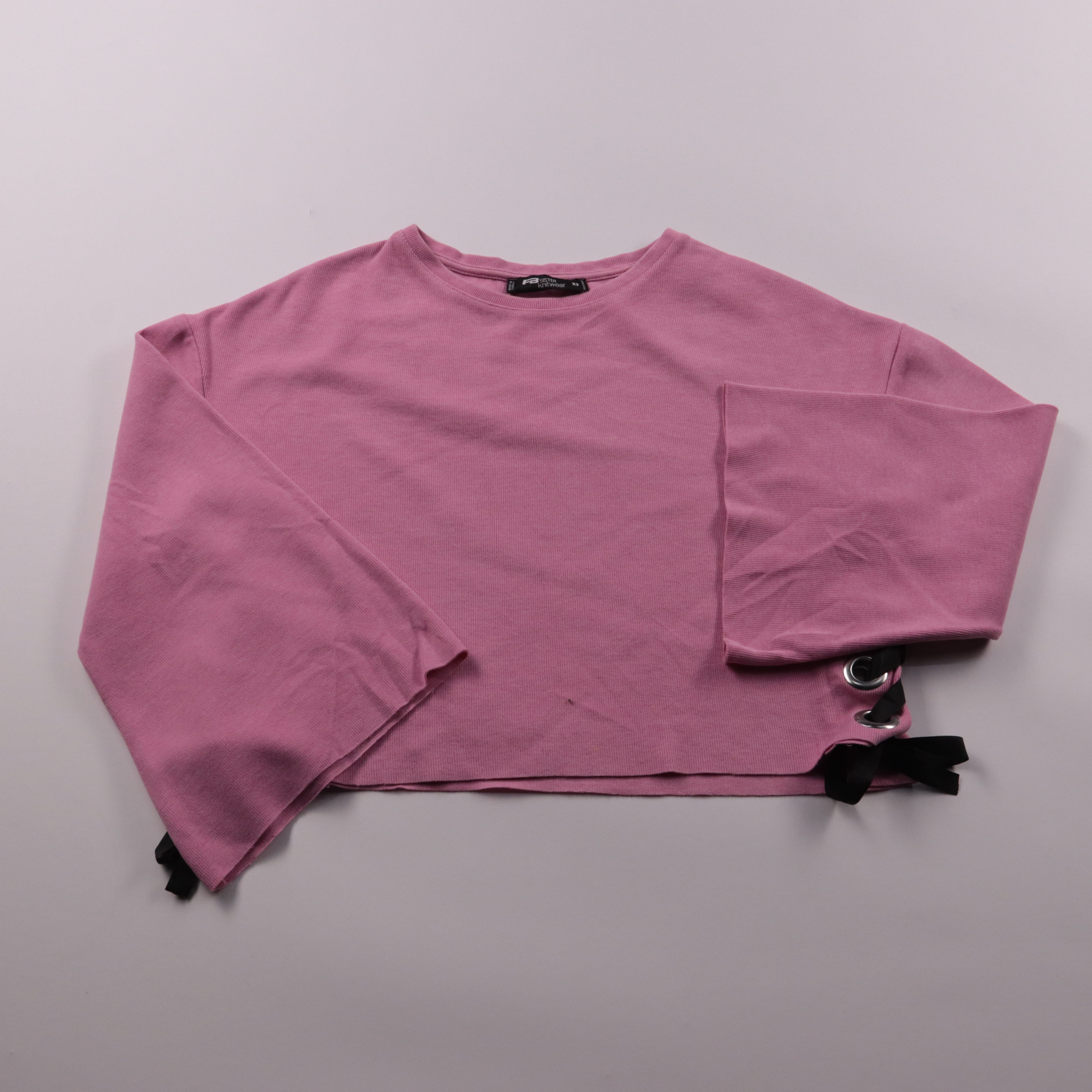 Укороченный лонгслив FB Sister knitwear в розовом цвете, с длинным рукавом и декоративной шнуровкой на боку. Подойдёт для повседневных образов с джинсами или юбкой в тёплую весну/осень. Трикотаж тянется и комфортно садится по фигуре.