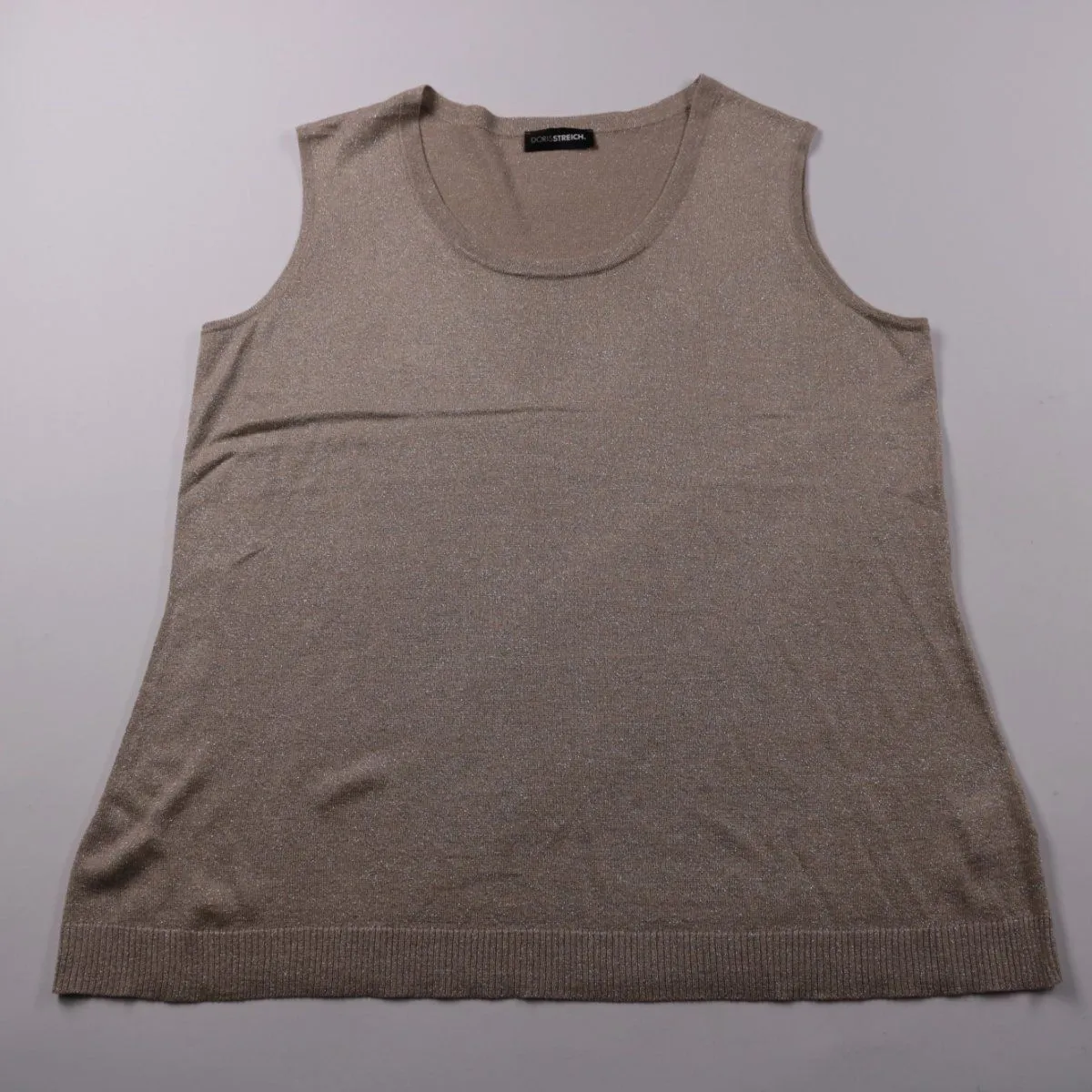 Женский топ DorisStreich без рукавов из тонкого трикотажа с деликатным металлизированным блеском. Подойдёт для повседневных образов и на выход — можно носить самостоятельно или как слой под жакет/кардиган. Лёгкая вискозная основа приятно ощущается на теле и хорошо драпируется.