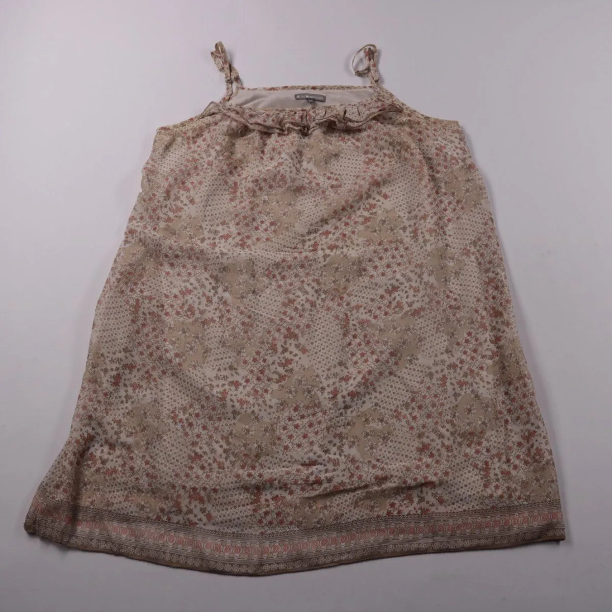 Топ Ici et Maintenant на тонких бретелях, с мелким цветочным принтом и рюшей по линии выреза. Подойдёт для лета и тёплой погоды, хорошо смотрится с шортами, юбкой или светлыми джинсами. Лёгкая ткань комфортна в носке и почти не занимает места в сумке.