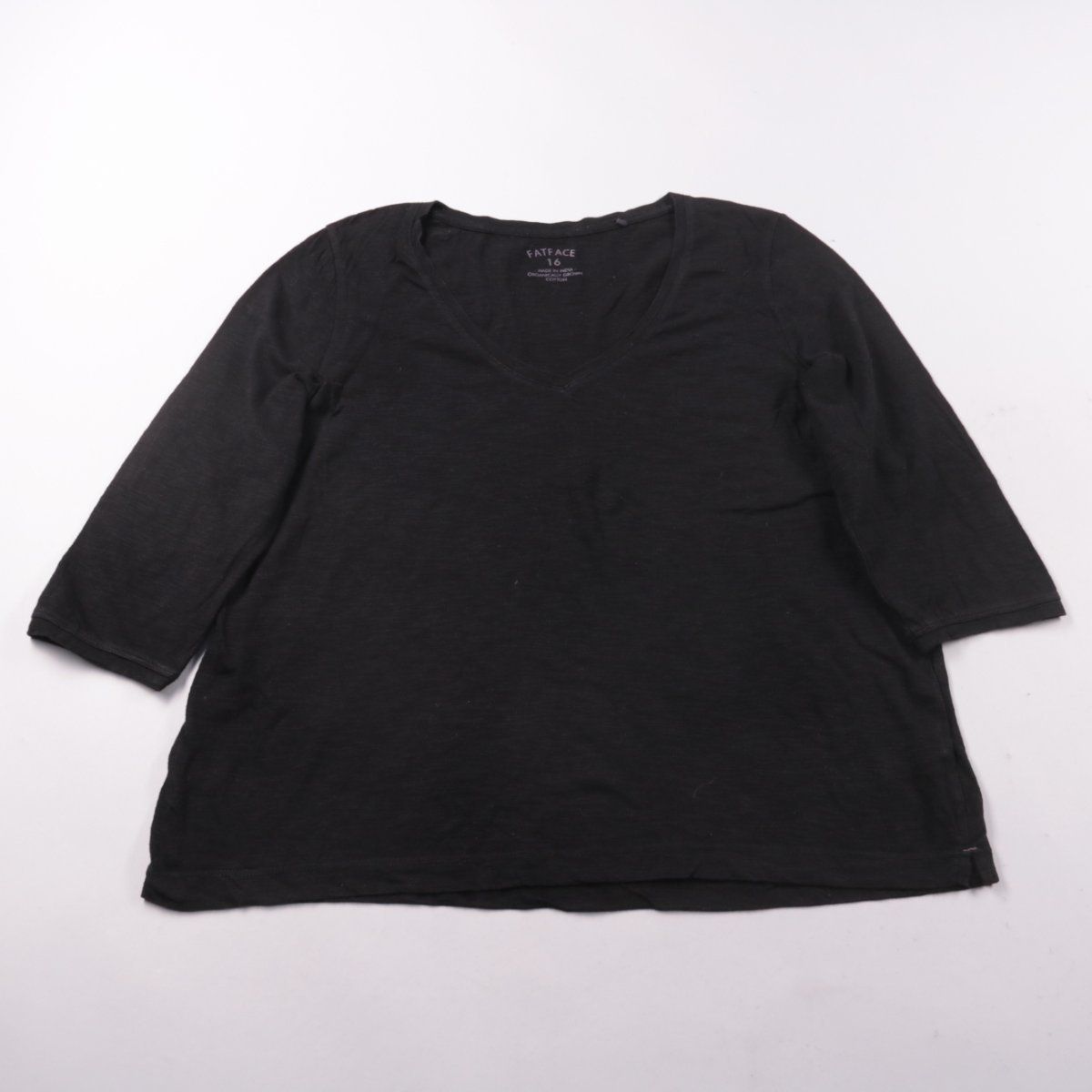 Женский лонгслив FatFace чёрного цвета из хлопка с V-образным вырезом и рукавом 3/4. Подойдёт для повседневных образов и как базовый слой в прохладную погоду. Натуральная ткань хорошо дышит и комфортна в носке.