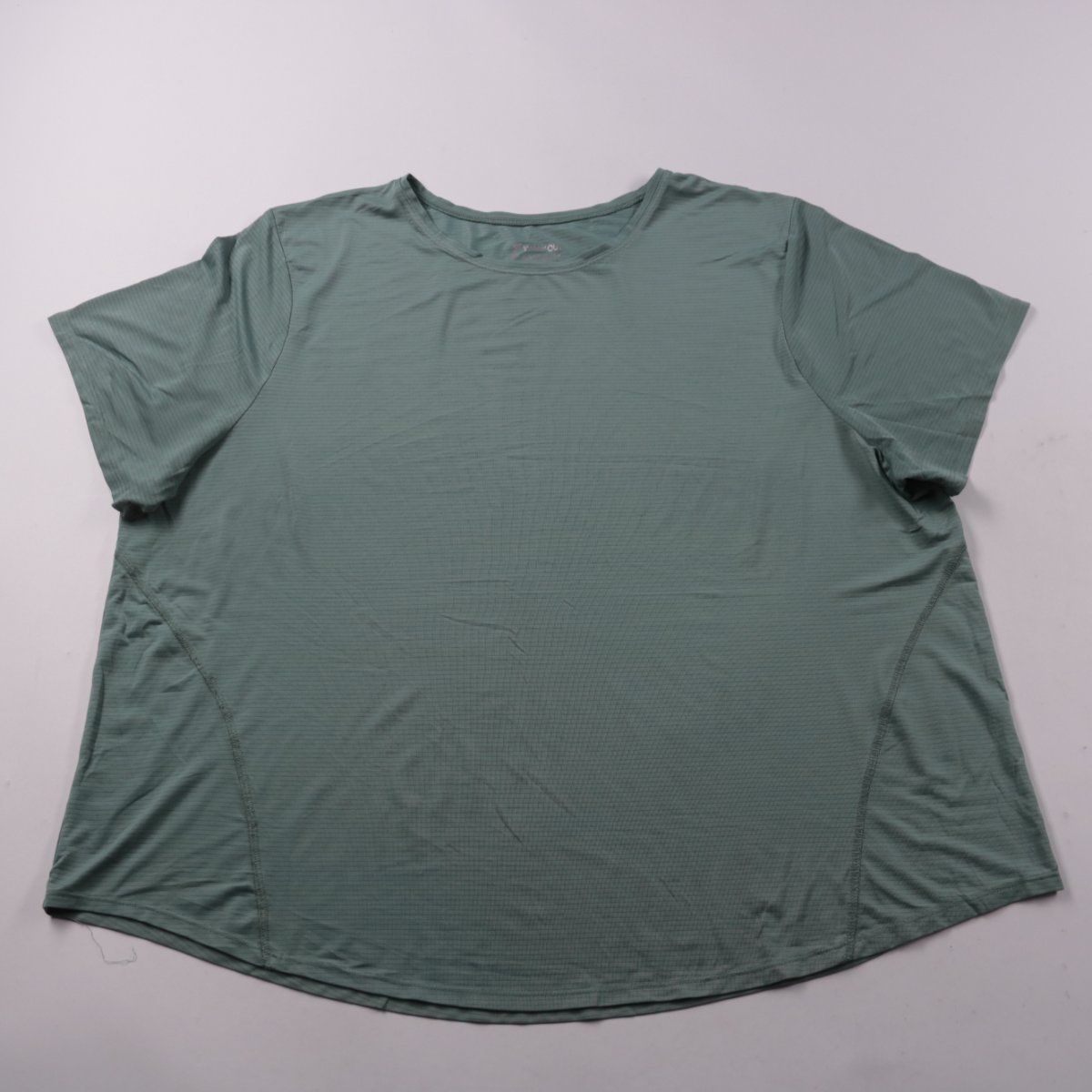 Женская спортивная футболка Work Out из фактурного эластичного трикотажа, цвет приглушённый зелёный. Подойдёт для тренировок и активных прогулок, свободный крой не стесняет движений. Материал быстро сохнет и тянется за счёт добавления эластана.