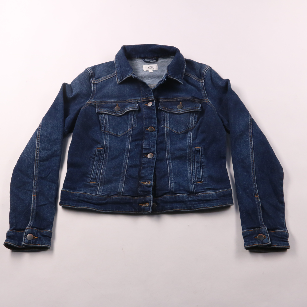 Джинсовая куртка Q/S из плотного синего денима с классическими карманами на груди и застёжкой на пуговицы. Подойдёт для прогулок и повседневных образов в демисезон, хорошо сочетается с платьями и джинсами. Материал с небольшим добавлением эластана чуть...