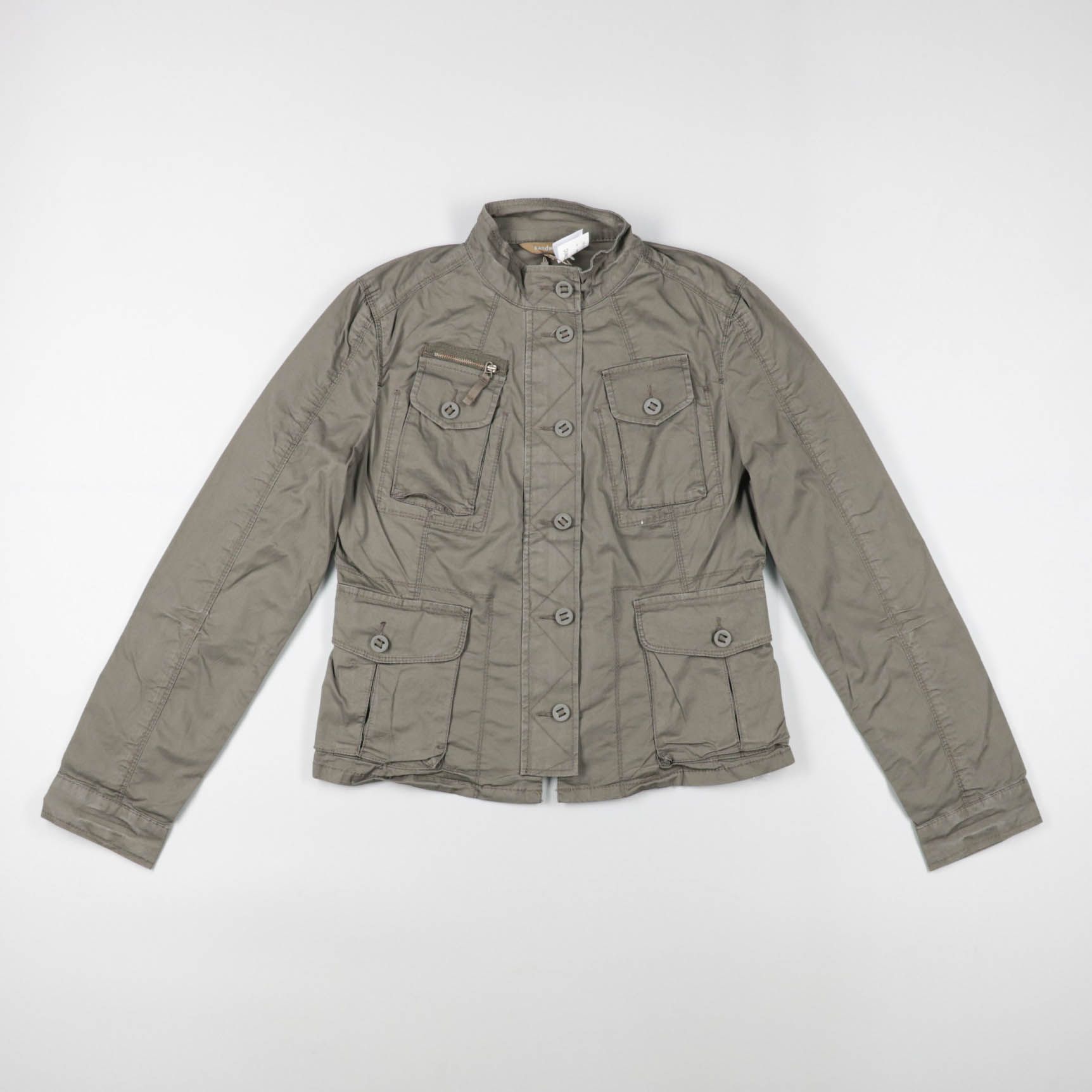 Женская лёгкая куртка Sandro в стиле сафари: застёжка на пуговицы, высокий воротник и четыре накладных кармана спереди. Подойдёт для повседневных прогулок и поездок в тёплую весну/осень. Практичный плюс — много карманов для мелочей и удобная посадка.