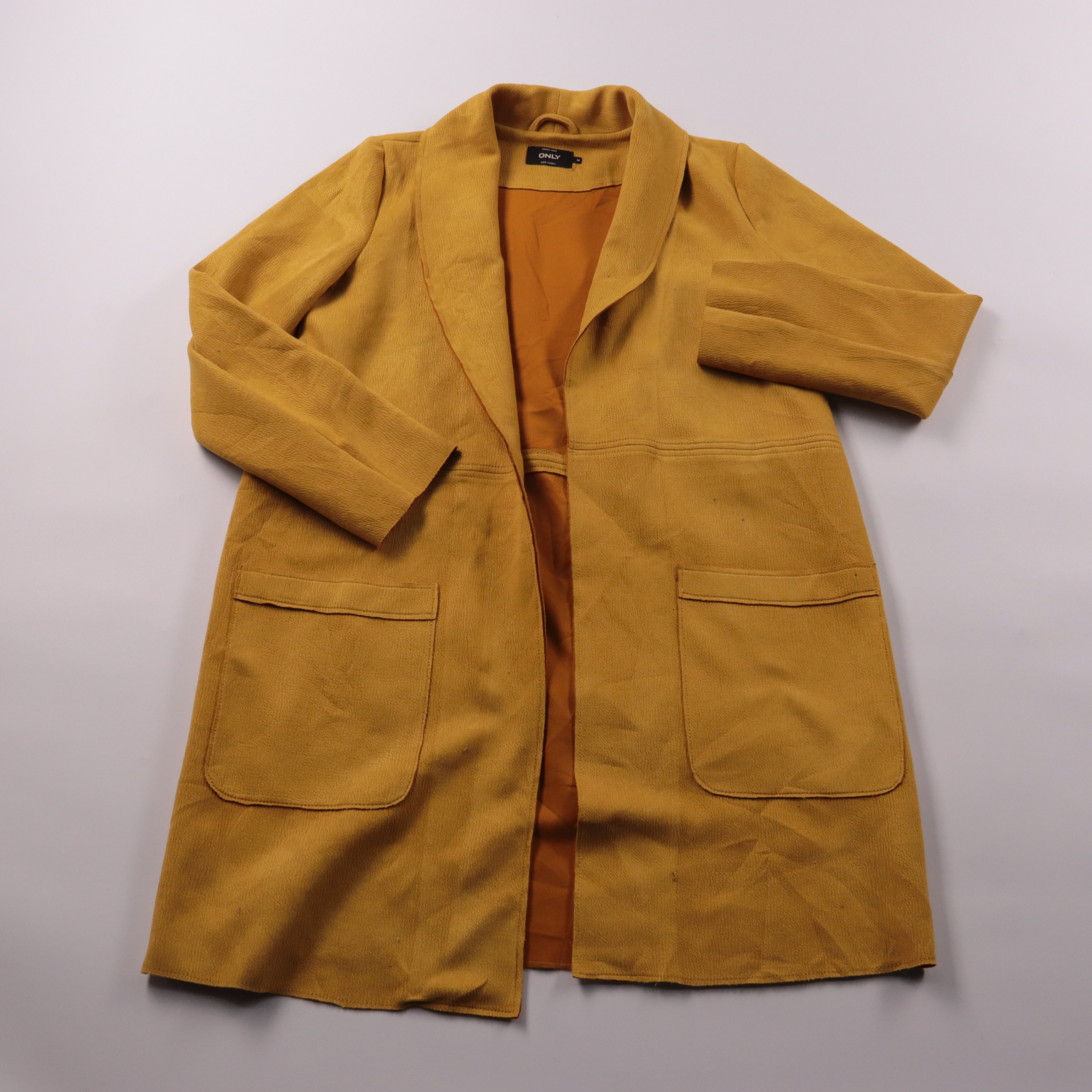 Пальто Only горчичного цвета, прямого кроя с крупными накладными карманами и мягким воротником. Подойдёт для демисезона и прохладных вечеров, хорошо сочетается с джинсами и базовыми вещами. Практично тем, что ткань плотная и не мнётся критично, а карма...