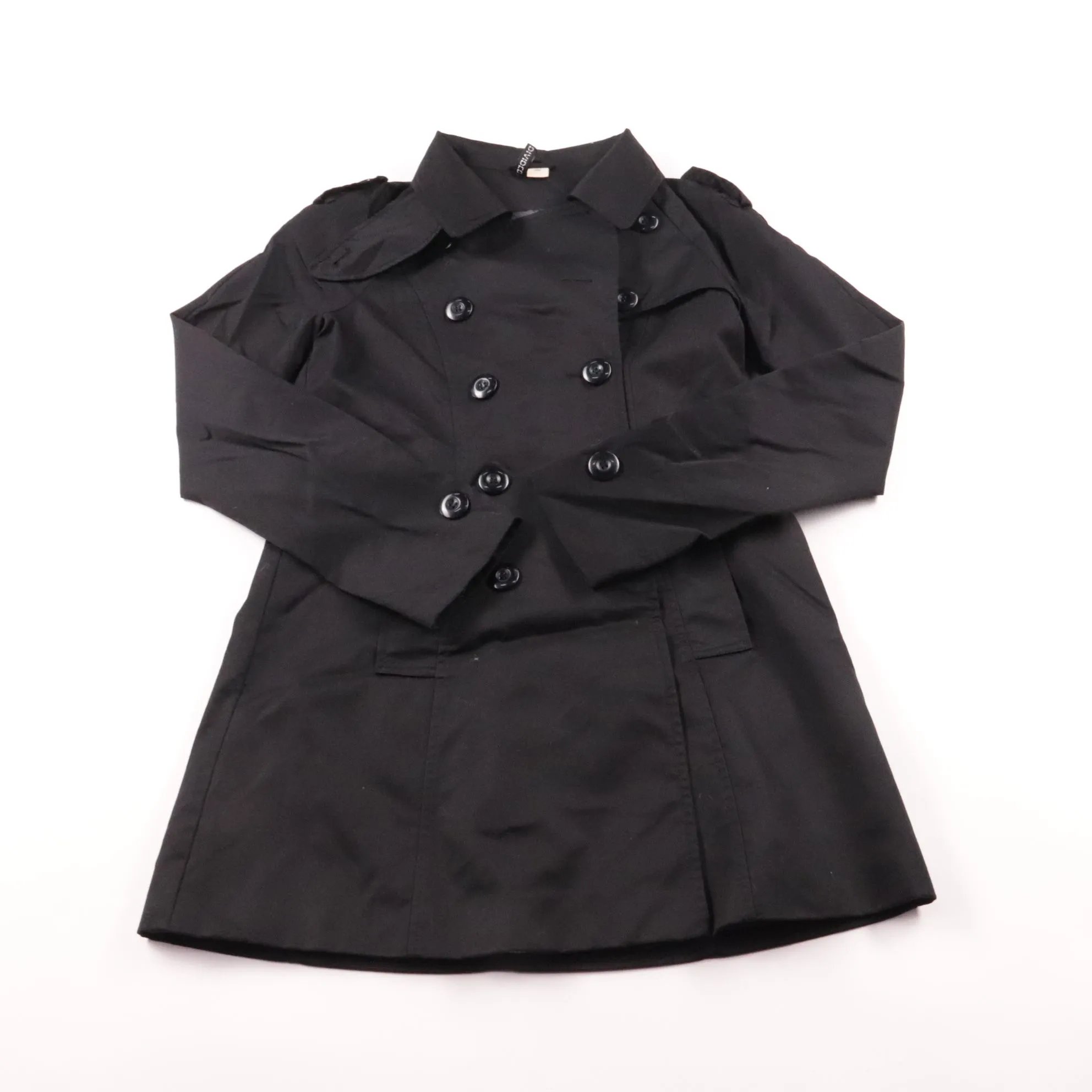 Женский двубортный плащ H&M в классическом тренч-стиле, чёрного цвета. Подойдёт для прохладной весны/осени и деловых образов, легко сочетается с базовым гардеробом. Практичный плюс — ткань с высоким содержанием полиэстера меньше мнётся и проста в уходе.