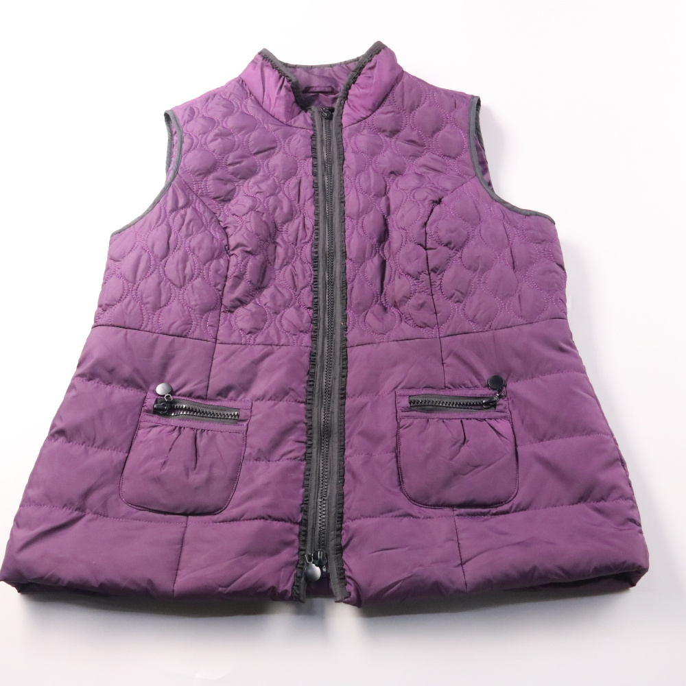 Стёганый утеплённый жилет Bonita фиолетового цвета, застёгивается на молнию, есть два кармана на молнии. Подойдёт для прогулок и повседневной носки в прохладную погоду поверх худи или свитера. Лёгкий и компактный, удобно брать с собой в поездки.