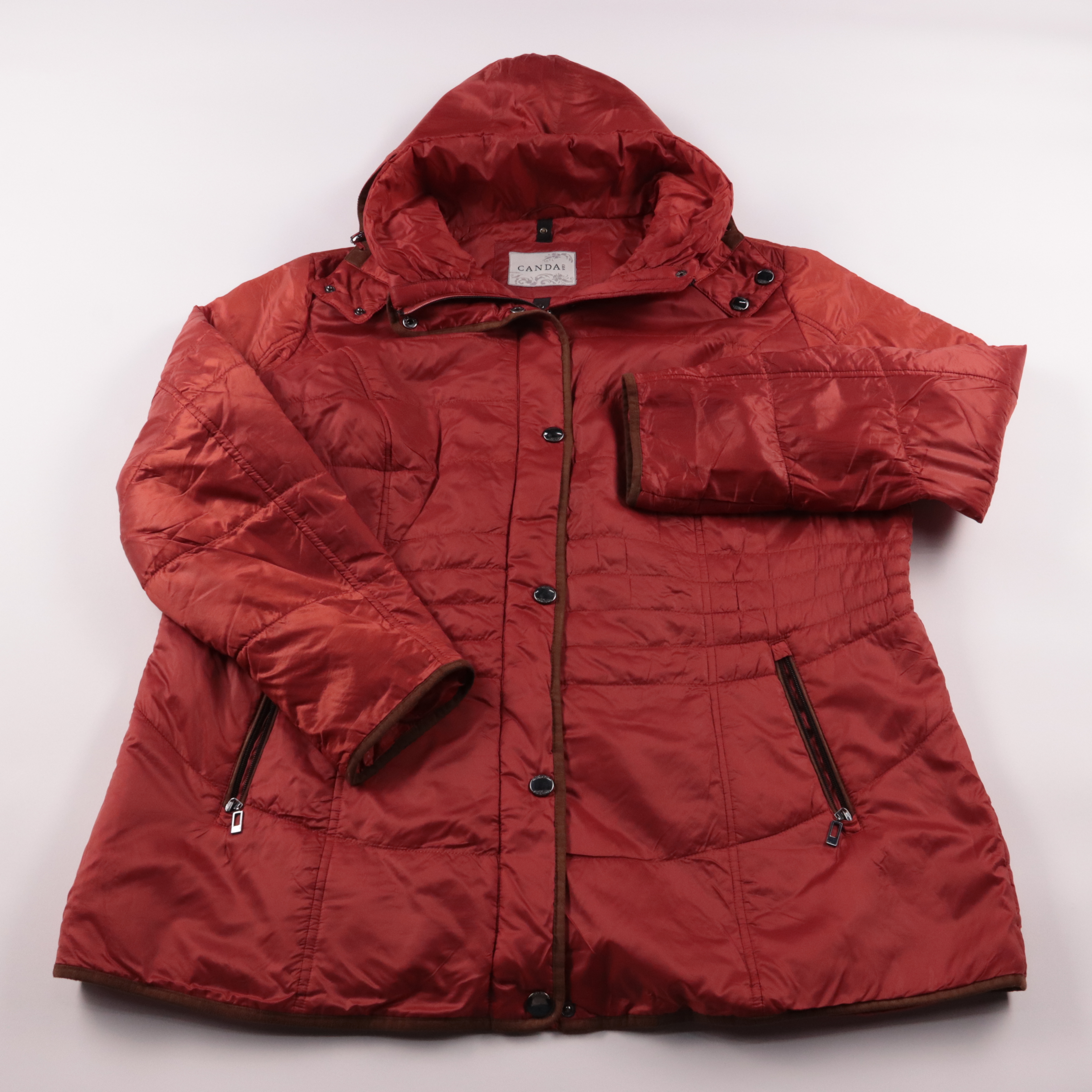Стёганая куртка Canda в красном цвете с капюшоном и удобной посадкой. Подойдёт для прохладной погоды и повседневных прогулок, есть боковые карманы на молниях. Практична в носке: лёгкая и быстро сохнет.