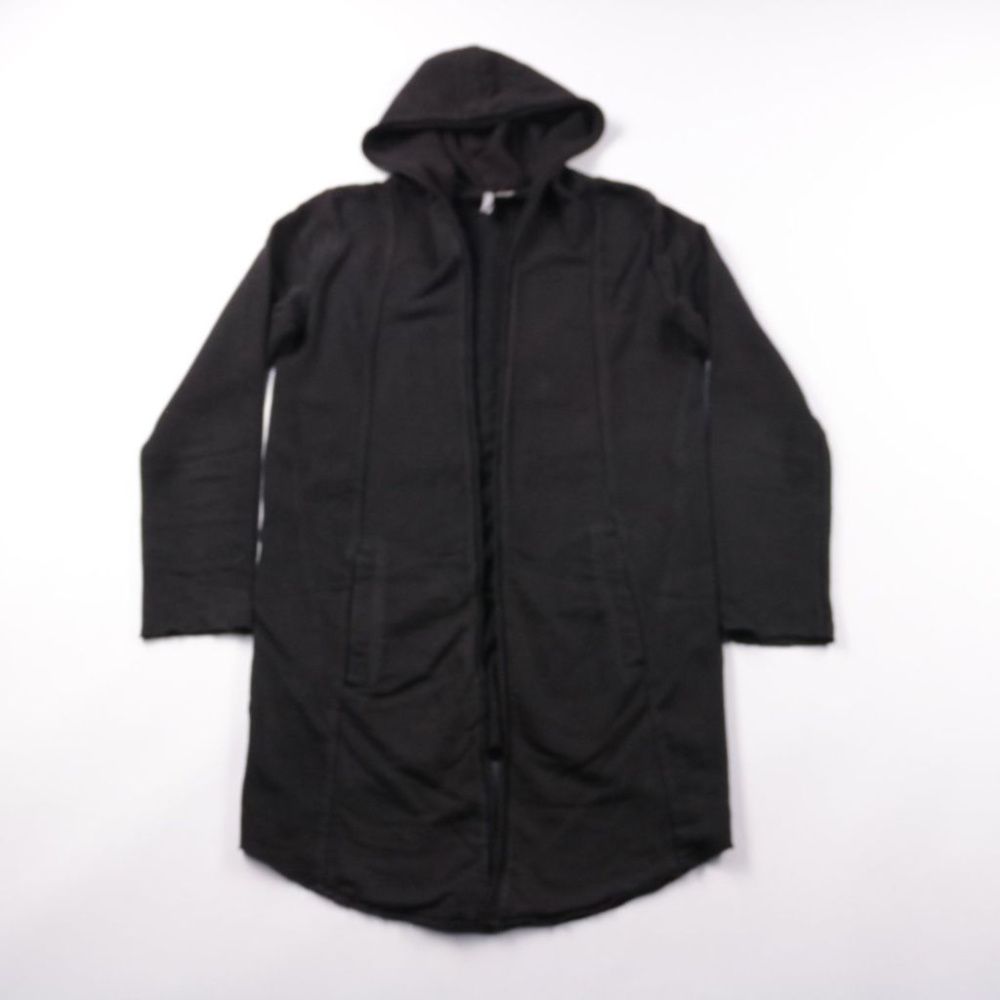 Удлинённая зимняя куртка Divided (H&M) чёрного цвета с капюшоном и застёжкой на молнию. Подойдёт для холодной погоды и повседневных прогулок, есть удобные боковые карманы. Практична в носке благодаря плотному утеплению и немаркому цвету.