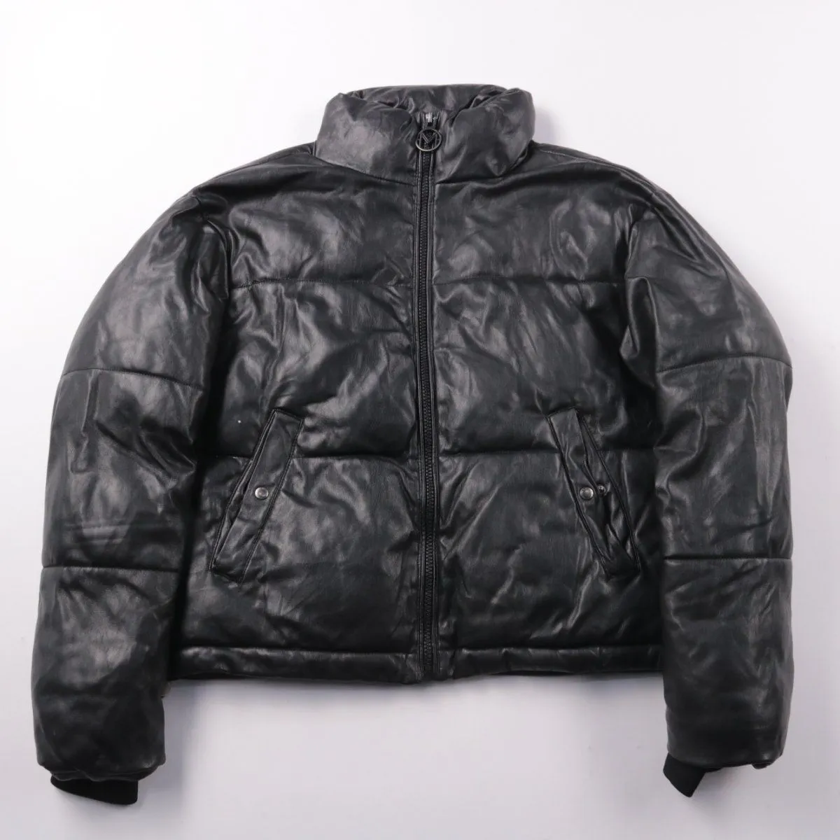 Укороченная стёганая куртка Melting Stockholm из мягкой эко-кожи (PU) на молнии и с высоким воротником. Подойдёт для зимних прогулок и городских образов в стиле casual/стрит, легко сочетается с джинсами и ботинками. Практичный плюс — верх из PU проще протирать от грязи и брызг.