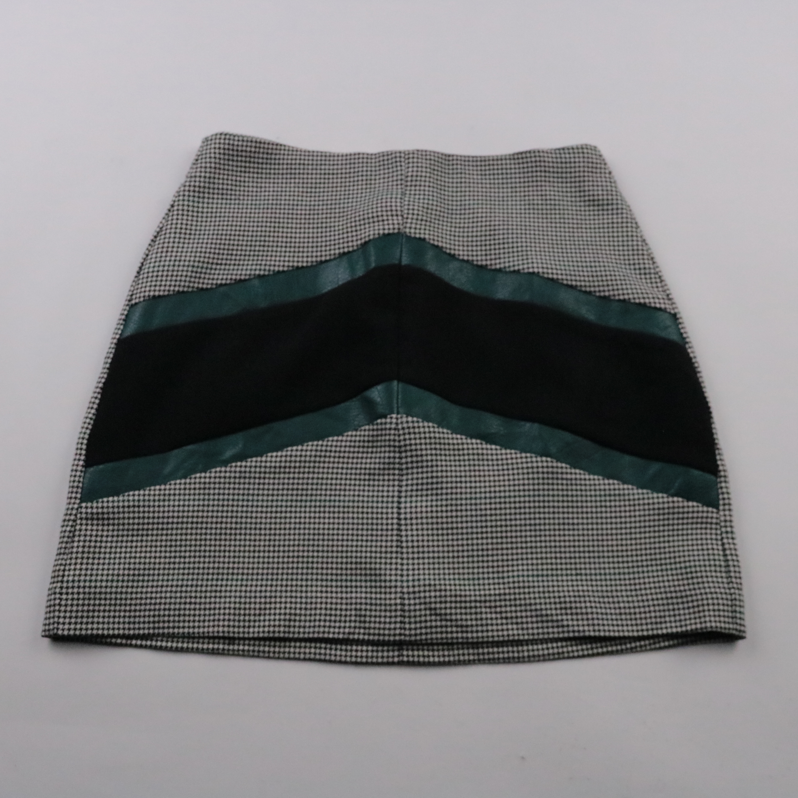 Мини-юбка Stradivarius в мелкую «гусиную лапку» с контрастной вставкой, хорошо смотрится в городских образах. Подойдёт для офиса и на каждый день с рубашкой или свитером. Ткань с добавлением эластана немного тянется и комфортно садится по фигуре.