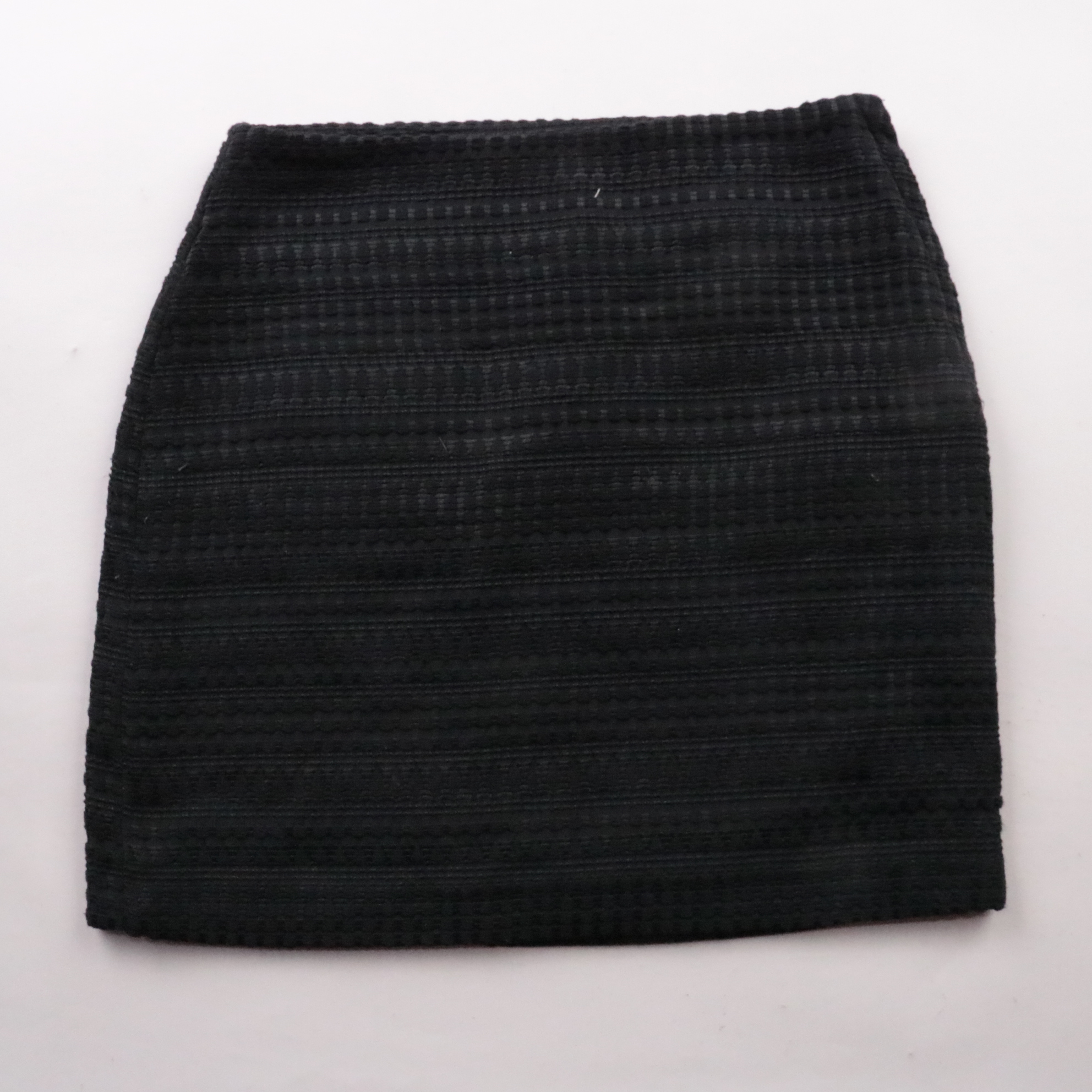 Юбка H&M чёрного цвета, короткая и облегающая, из фактурной ткани в горизонтальную полоску. Подойдёт для офиса и повседневных образов с рубашкой, водолазкой или жакетом. Есть подкладка, поэтому юбка комфортно сидит и меньше просвечивает.