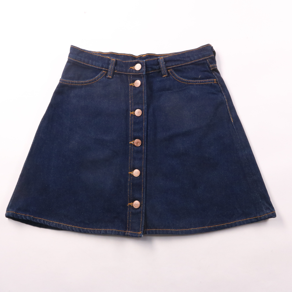 Джинсовая юбка на пуговицах спереди, из плотного хлопкового денима. Подойдёт для повседневных образов в городе и на прогулки, хорошо сочетается с футболками и рубашками. Практичный плюс — удобные карманы и износостойкая ткань.