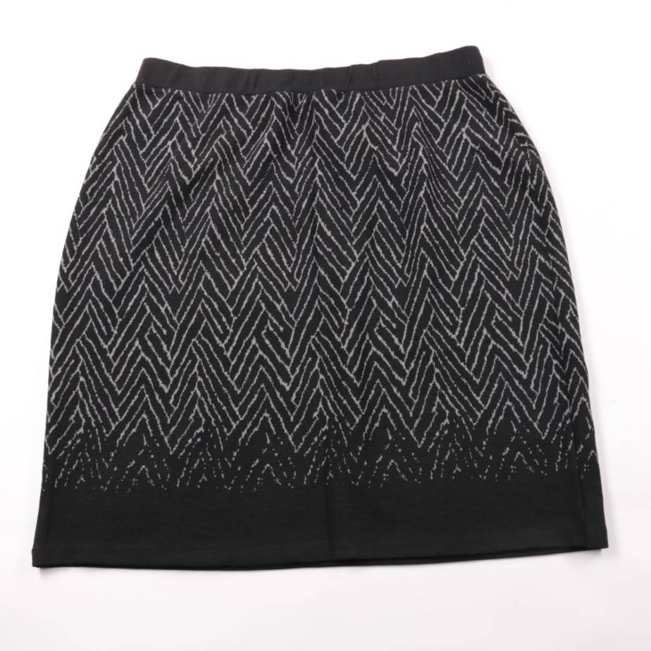 Юбка X-two чёрного цвета с серым геометрическим узором «ёлочка» и широким поясом. Подойдёт для офиса и повседневных образов в прохладную погоду, легко сочетается с однотонными свитерами и рубашками. Материал с добавлением эластана немного тянется и ком...