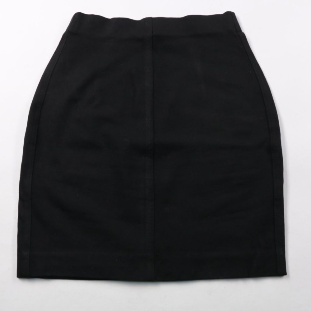 Чёрная юбка H&M прямого кроя из плотного трикотажа с аккуратной посадкой по талии. Подойдёт для офиса и повседневных образов, легко сочетается с рубашками и базовыми топами. Материал тянется и комфортно сидит при движении.