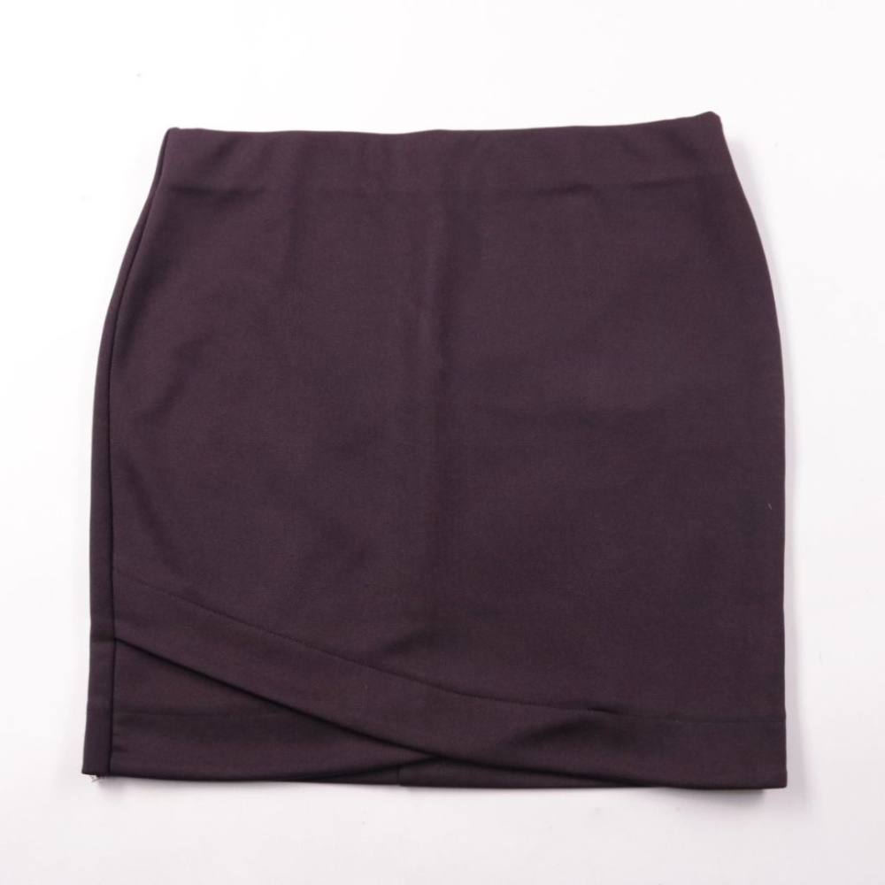 Юбка H&M мини длины в тёмно-фиолетовом оттенке, с запахом/перехлёстом спереди. Подойдёт для офиса и выходов, легко сочетается с рубашками и водолазками. Практичный плюс — плотная ткань почти не просвечивает и хорошо держит форму.