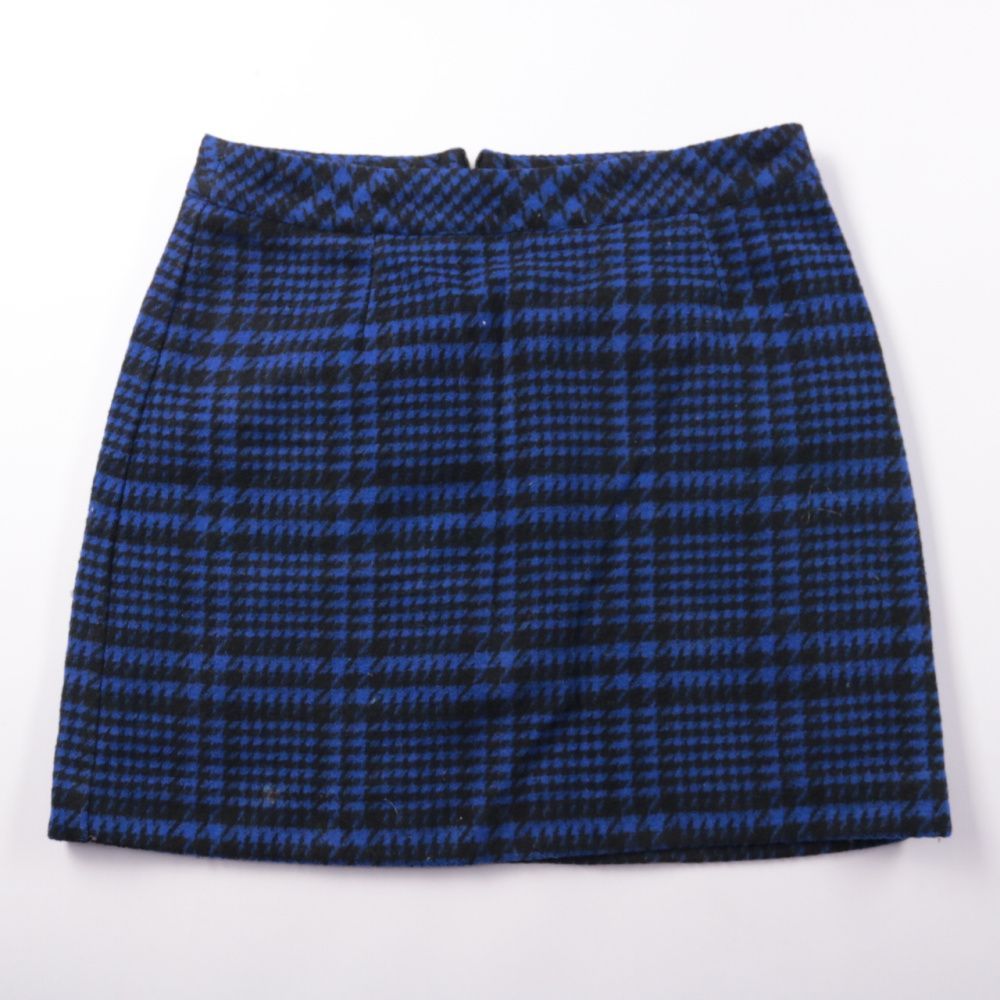 Короткая юбка Costes из плотной ткани в сине-чёрную клетку, на подкладке. Подойдёт для повседневных образов и офиса с колготками и ботильонами или кедами. Практичный плюс — ткань держит форму и выглядит аккуратно.