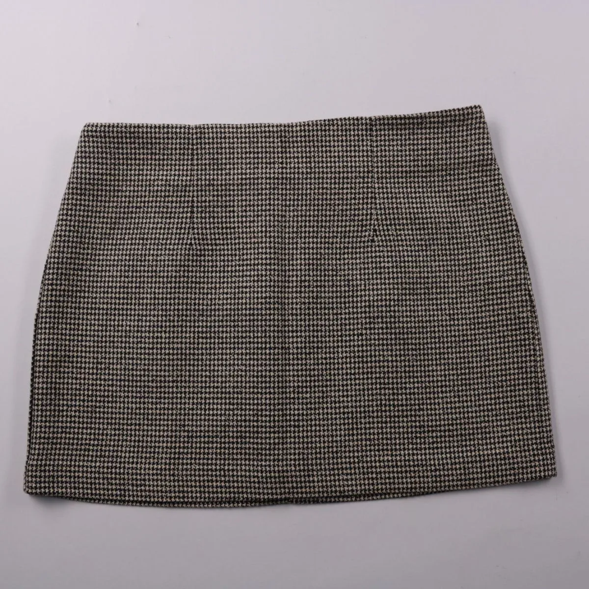Юбка MNG из плотной ткани в мелкую гусиную лапку, короткая и аккуратно сидит по талии. Подойдёт для офиса и повседневных образов с водолазкой или рубашкой в демисезон. Практичный плюс — немаркий рисунок и ткань хорошо держит форму.