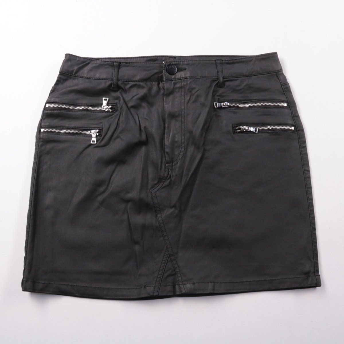 Юбка By Very Petite из плотной ткани с покрытием и молниями на карманах. Подойдёт для повседневных образов в прохладную погоду и на вечер, хорошо смотрится с ботинками или кедами. Практичный плюс — материал с эластаном тянется и комфортно садится по фигуре.