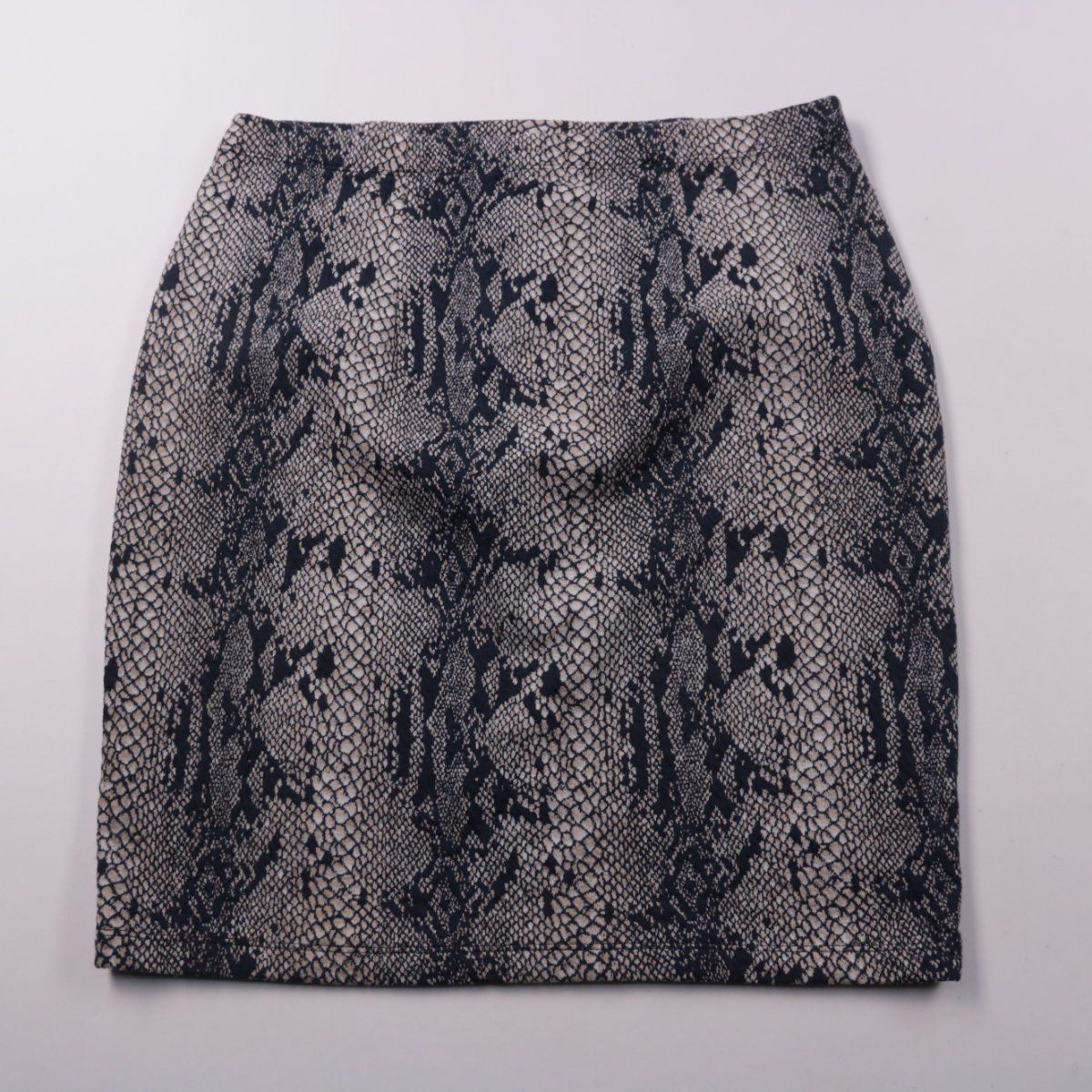 Юбка Tu с принтом под змеиную кожу в серо-чёрной гамме. Подойдёт для повседневных и офисных образов, легко сочетается с однотонным верхом. Ткань с эластаном чуть тянется и комфортно садится по фигуре.